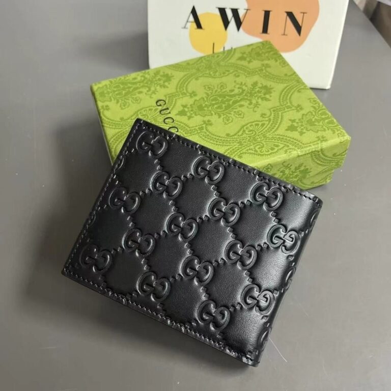 GUCCI 11CM Embossed double fold cowhide wallet card bag for men