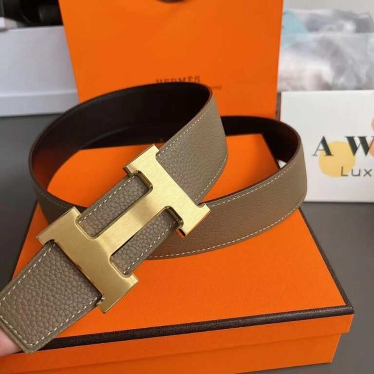 HERMES Gold buckle leather double-sided belt for men and women