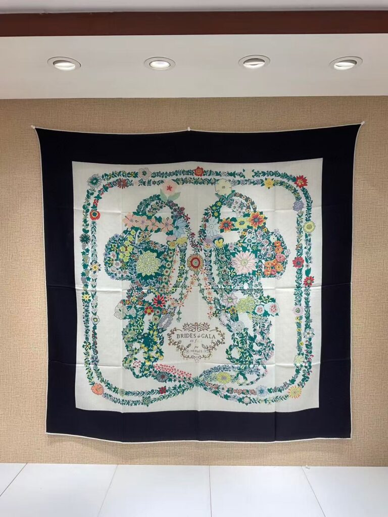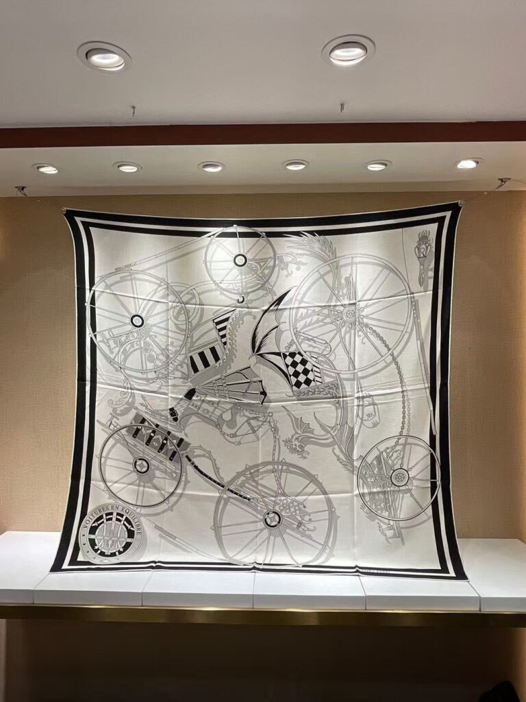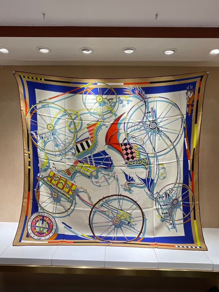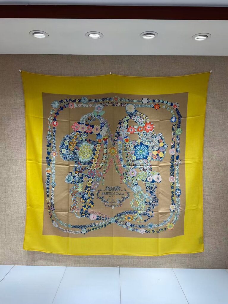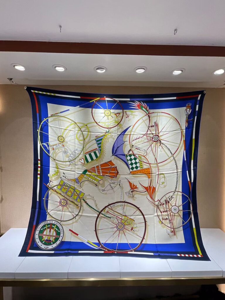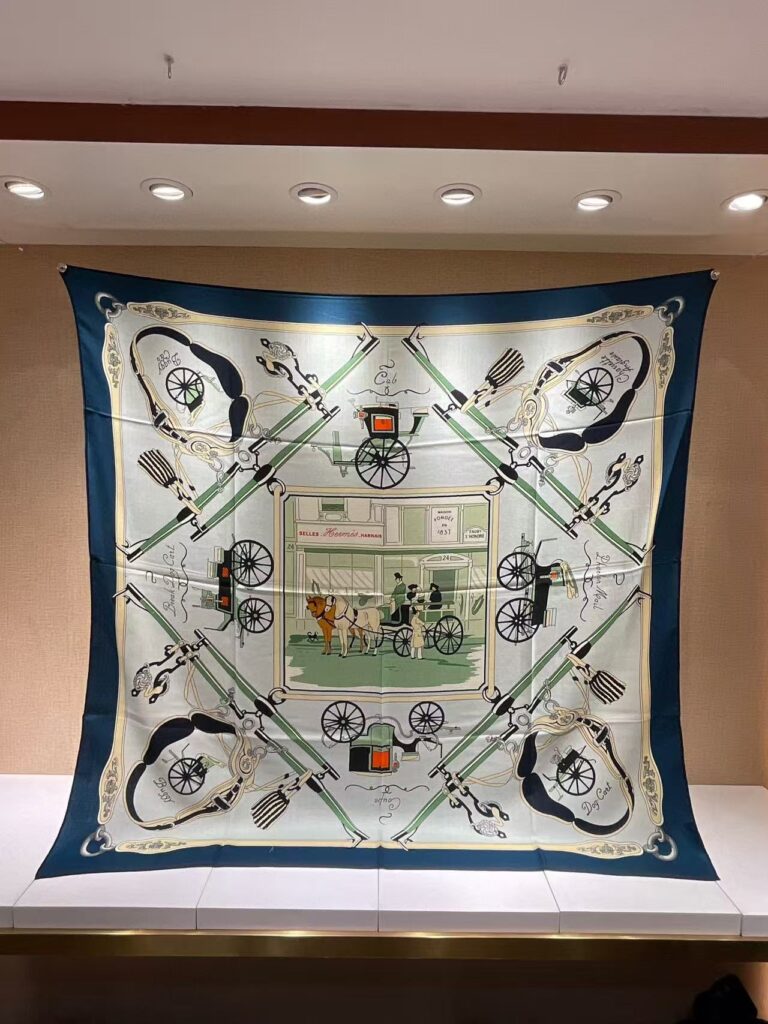 HERMES Carriage printed pattern silk scarf for women’s holiday gift 140x140cm