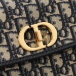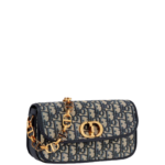 The 30 Montaigne Avenue bag enhances the hallmark line with a timeless and elegant style. Crafted in blue Dior Oblique jacquard. the rounded flap with delicate curves is punctuated by a gold-finish metal CD clasp inspired by the seal of a Christian Dior perfume bottle. The design is completed by other details. like the 30 Montaigne signature embossed on the back and the signature chain alternating gold-finish metal and tonal enamel links that match the leather. The gusseted bag features a spacious and refined silhouette that can be carried by hand. worn over the shoulder or crossbody.