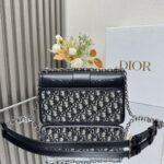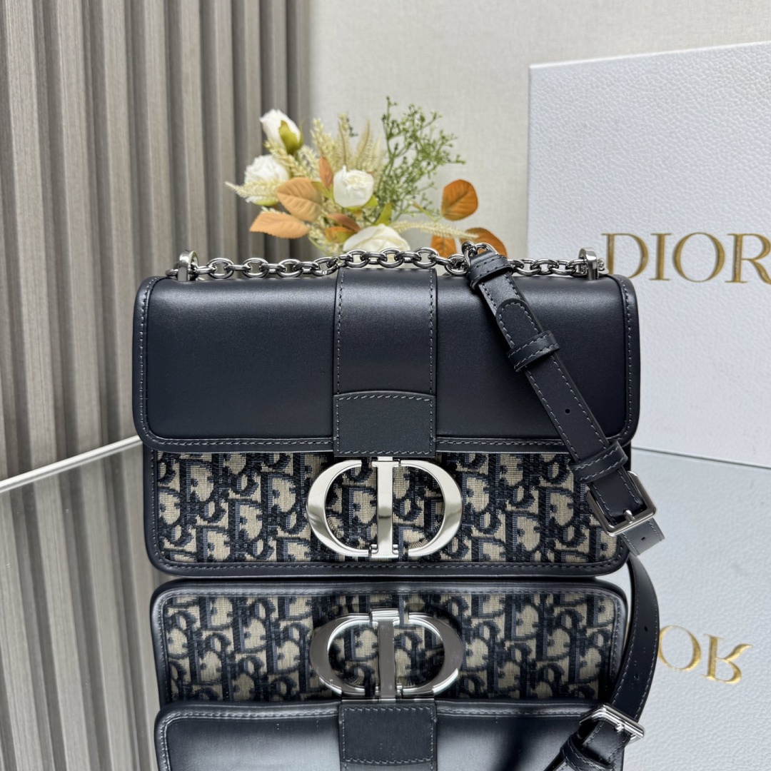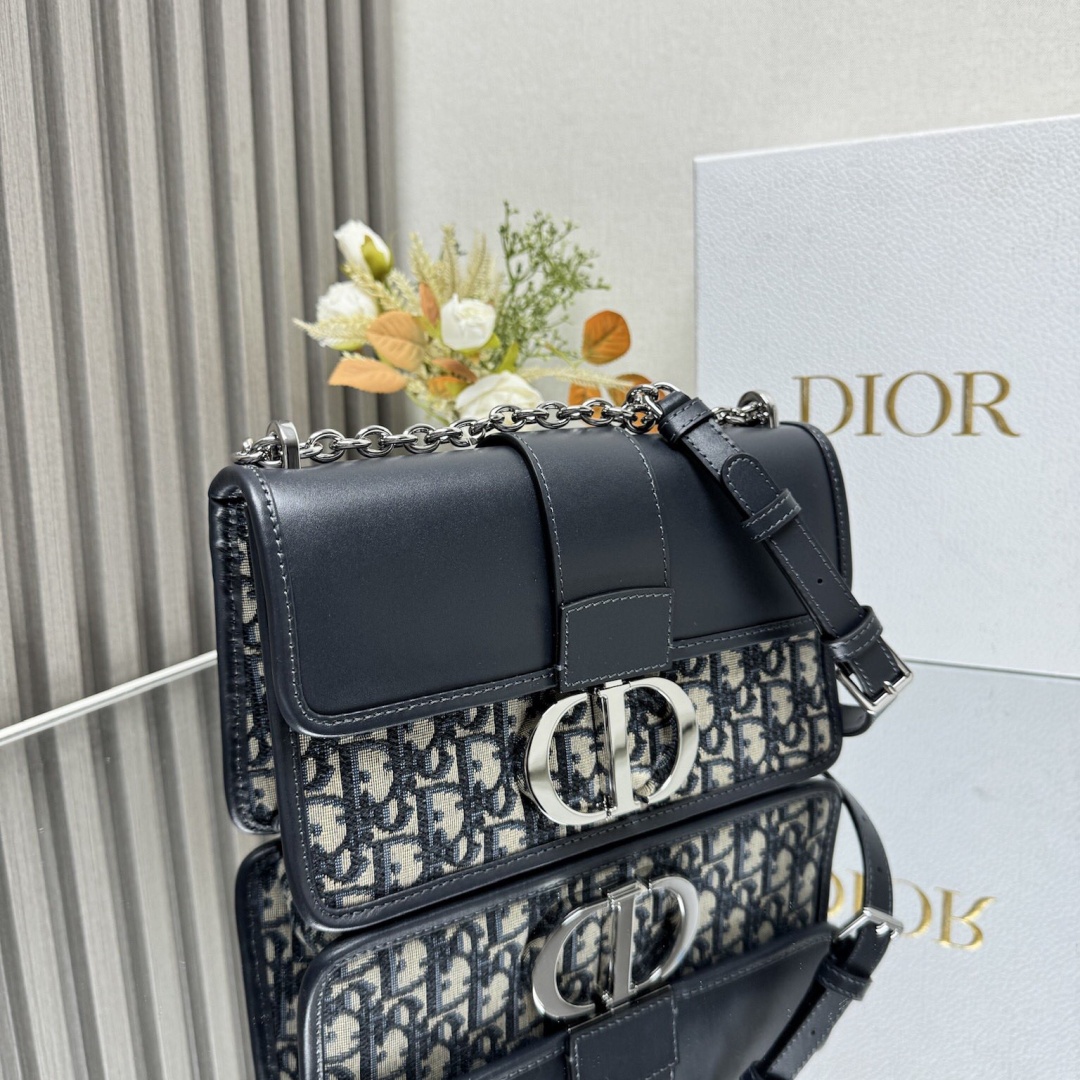 The East-West bag with chain enhances the 30 Montaigne line with a timeless and elegant design crafted in blue Dior Oblique jacquard. The tonal smooth calfskin flap features a silver-finish metal CD clasp. inspired by the seal of a Christian Dior perfume bottle. Other details. like the embossed 30 Montaigne signature on the back. highlight the streamlined style. The removable chain strap has a leather insert that allows the bag to be comfortably carried by hand. worn over the shoulder or crossbody.