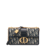 The East-West bag with chain enhances the 30 Montaigne line with a timeless and elegant design. The bag is crafted in blue jacquard and highlights the House's hallmark Dior Oblique motif. The flap has an antique gold-finish metal CD clasp. inspired by the seal of a Christian Dior perfume bottle. Other details. like the embossed 30 Montaigne signature on the back. highlight the streamlined design. The bag features a removable chain strap with a leather insert that allows it to be comfortably carried by hand. worn over the shoulder or crossbody.