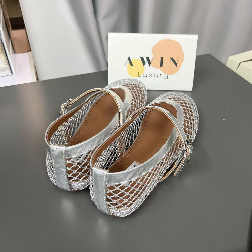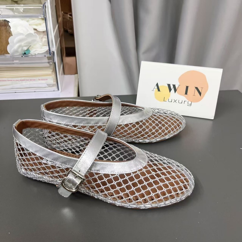 Alaia Leather Round-Toe Ballet Flats – Casual Women’s Shoes