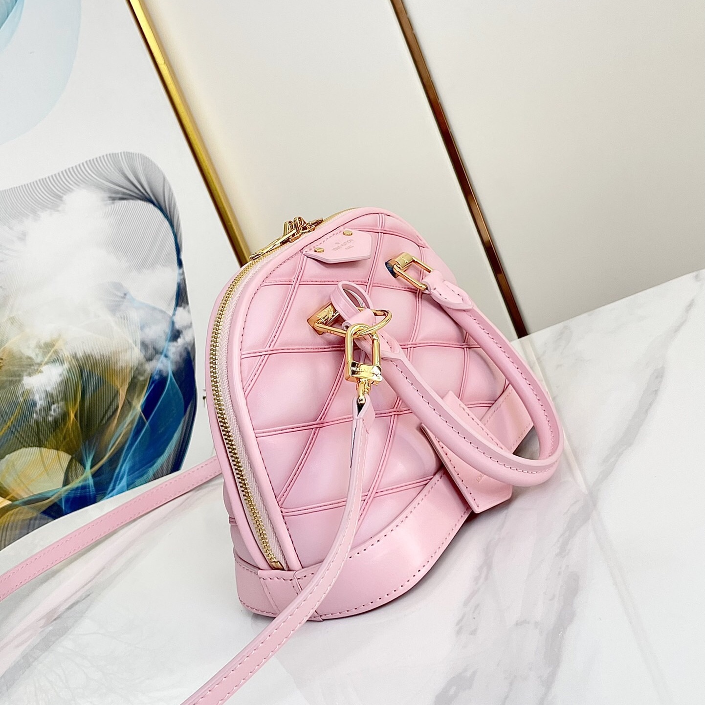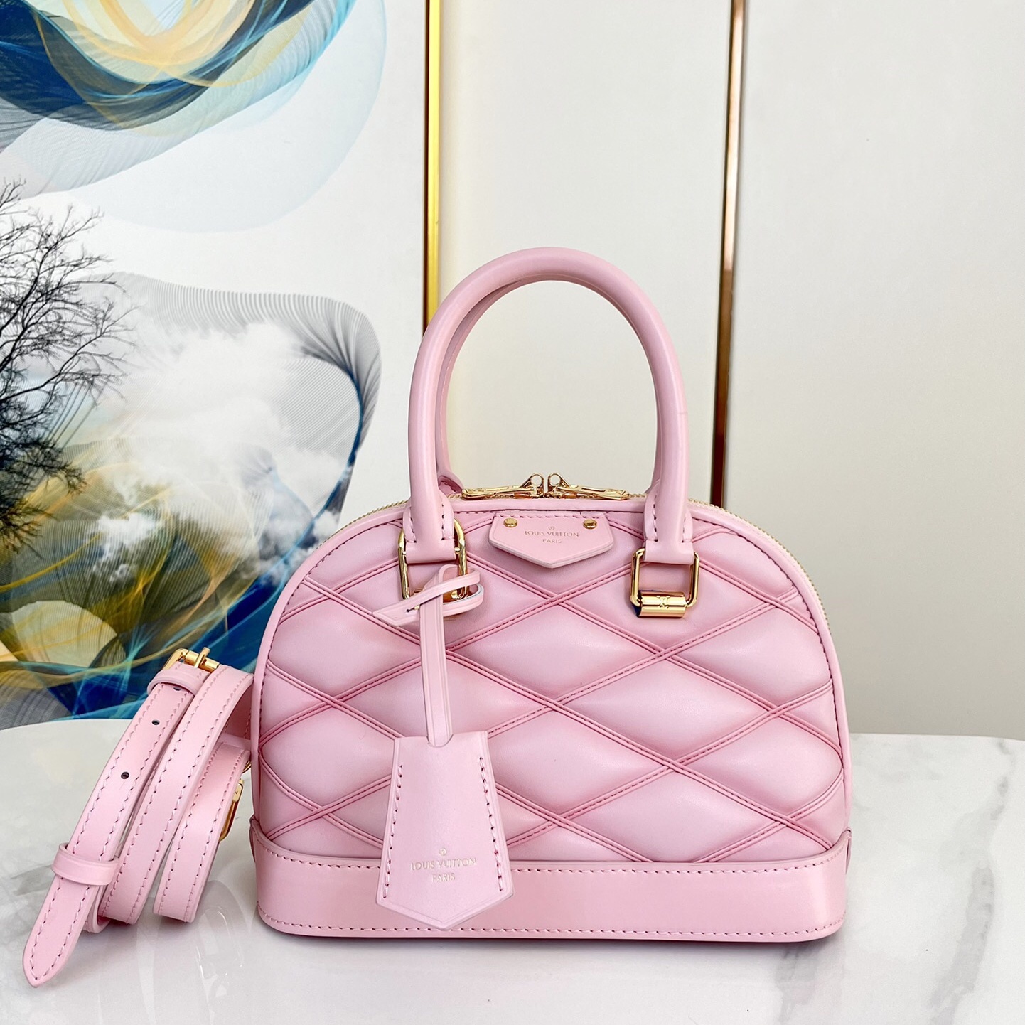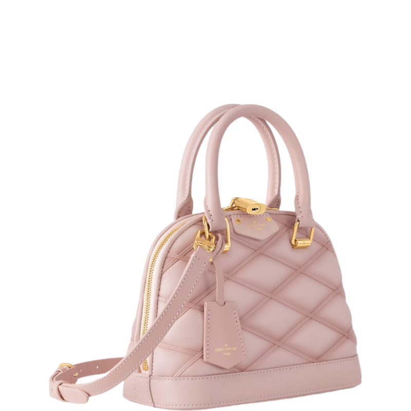 Nicolas Ghesquière invents a colorful new version of the House's historic quilting on this Alma BB. Made from lambskin. it features an elegant pastel colorway with a tastefully smoky aspect. evoking the magnificent interiors of the Borromeo Palace. Two top handles and a detachable strap mean the Alma can be carried in a variety of ways.