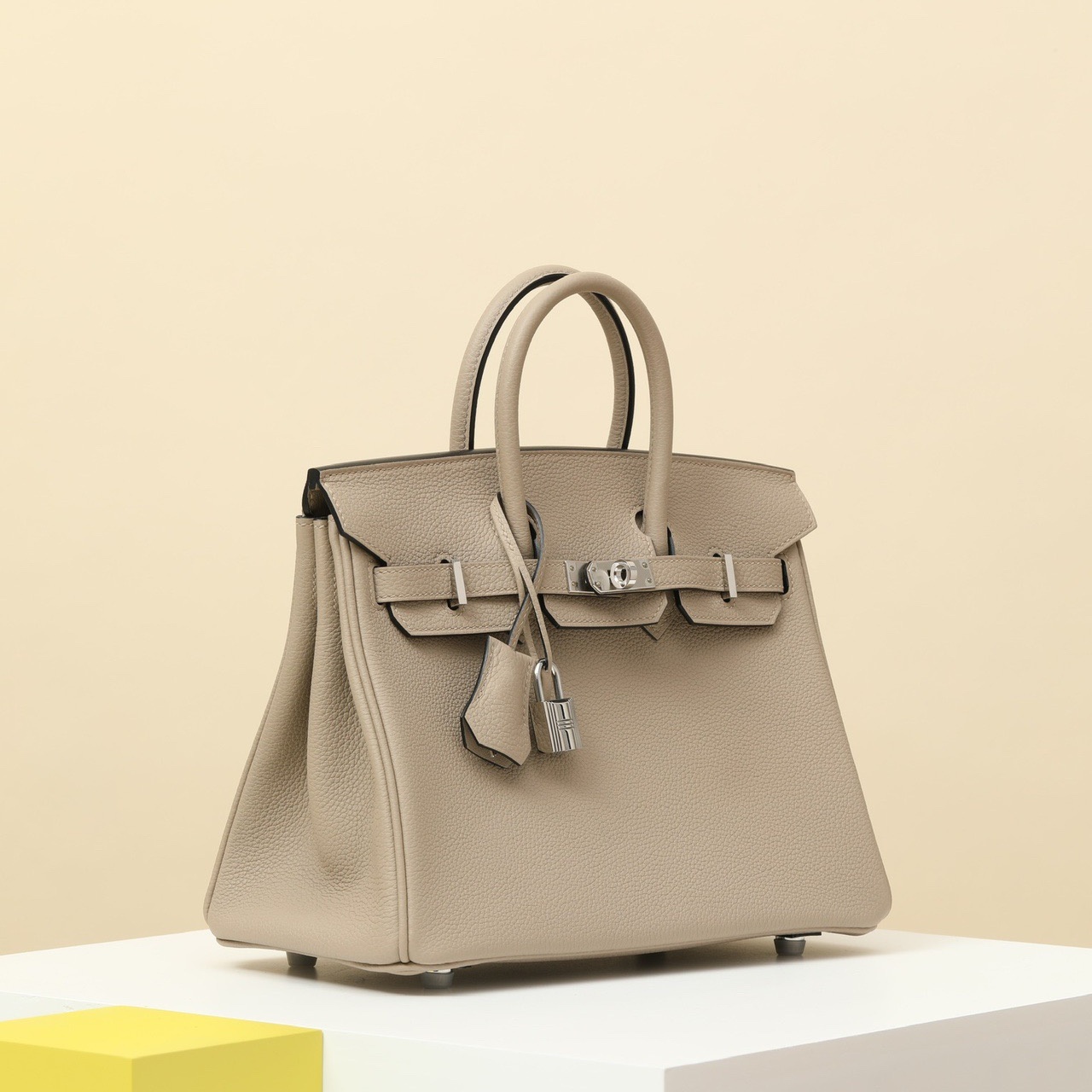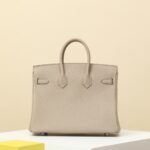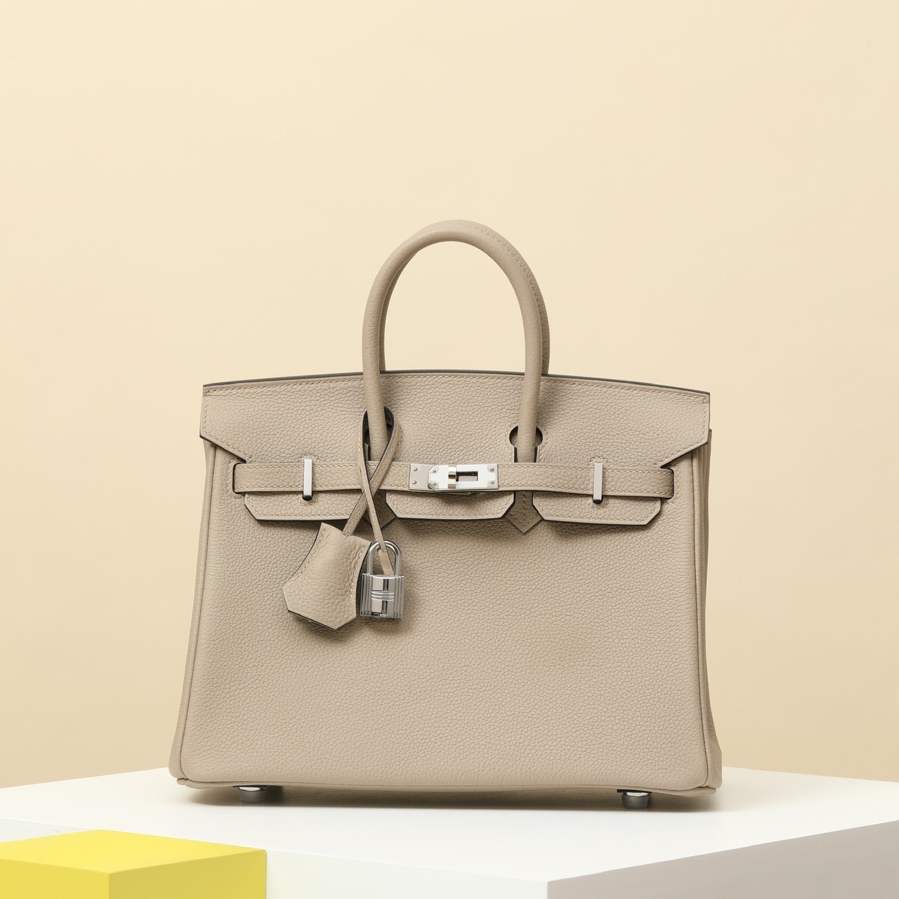 This Birkin 25 bag is made of Togo leather with metal accessories and comes with tonal stitching. front flap. two straps with center buckle. clochette with lock and two keys. and double rolled handles.