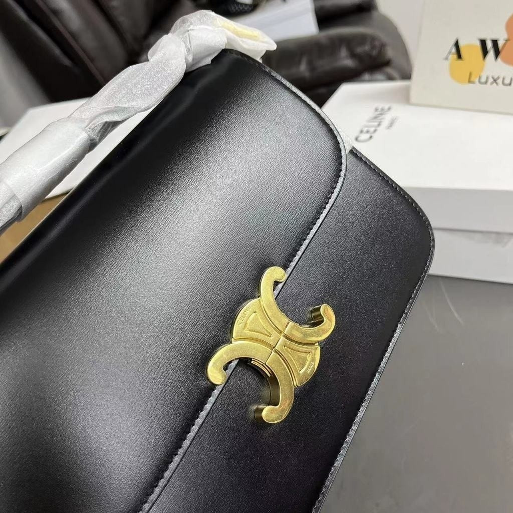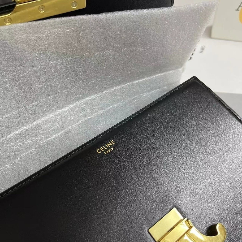 CELINE Triomphe 18.5/22 Gold Lock Shiny Leather Shoulder Bag Crossbody Bag