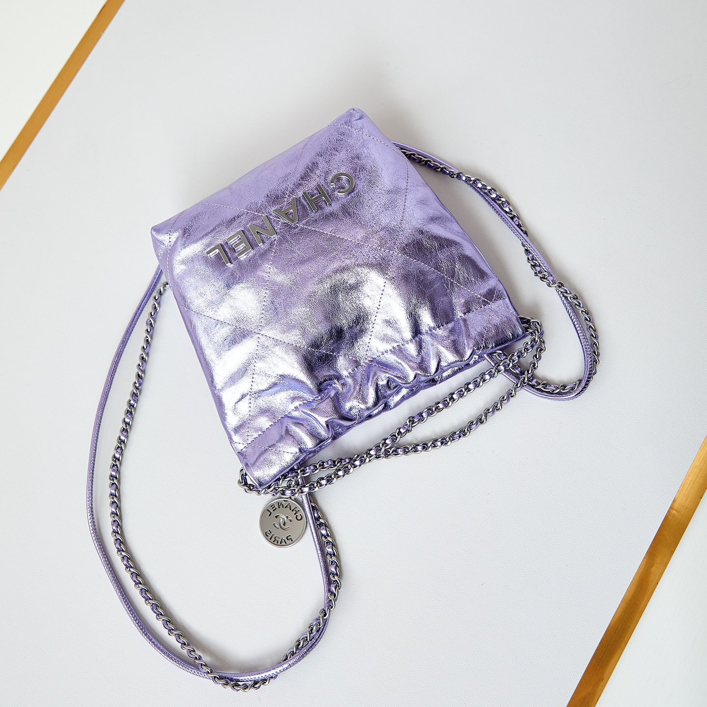 Cruise 2024/25 Material-Metallic Calfskin & Silver-Tone Metal Colors-Lilac Dimensions-20 x 19 x 6cm/7.9 x 7.5 x 2.4in
