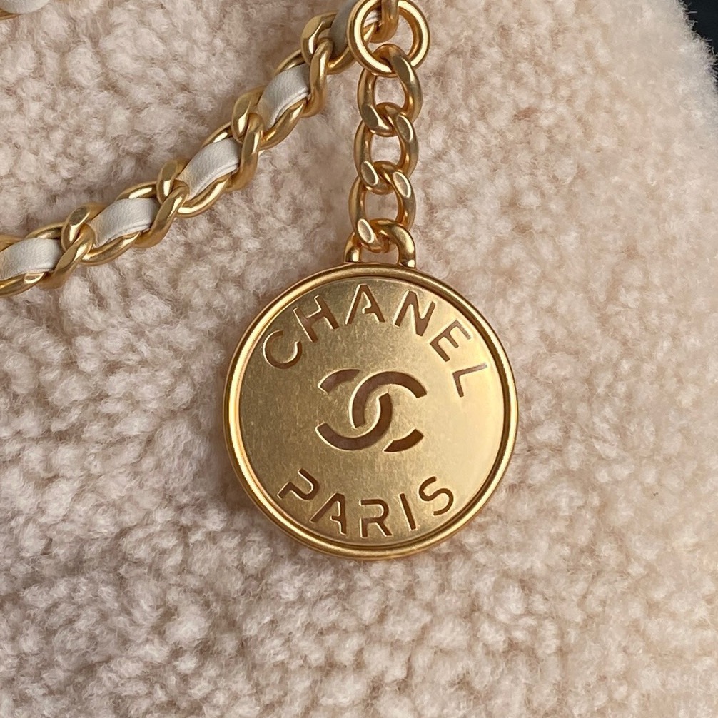 Cruise 2024/25 Material-Shearling Lambskin & Gold-Tone Metal Colors-Ecru Dimensions-20 x 19 x 6cm/7.9 x 7.5 x 2.4in