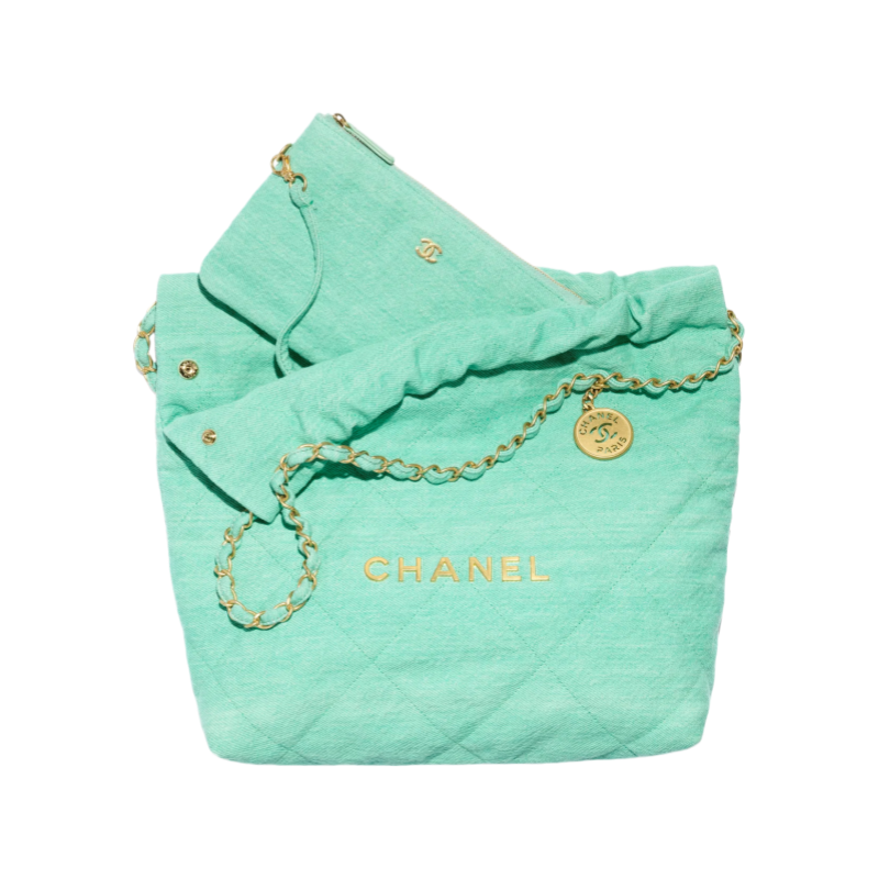 Cruise 2024/25 Material-Washed Denim & Gold-Tone Metal Colors-Turquoise Dimensions-35 x 37 x 7cm/13.8 x 14.6 x 2.8in