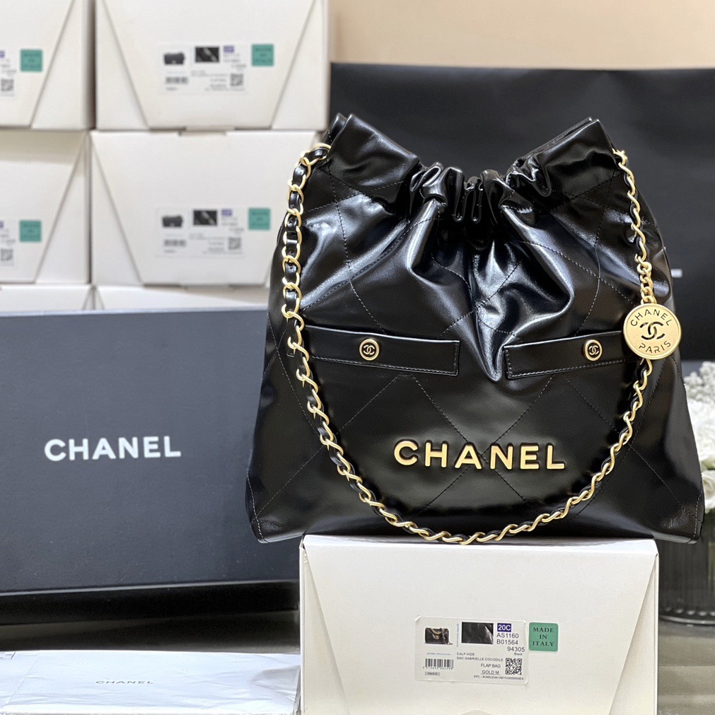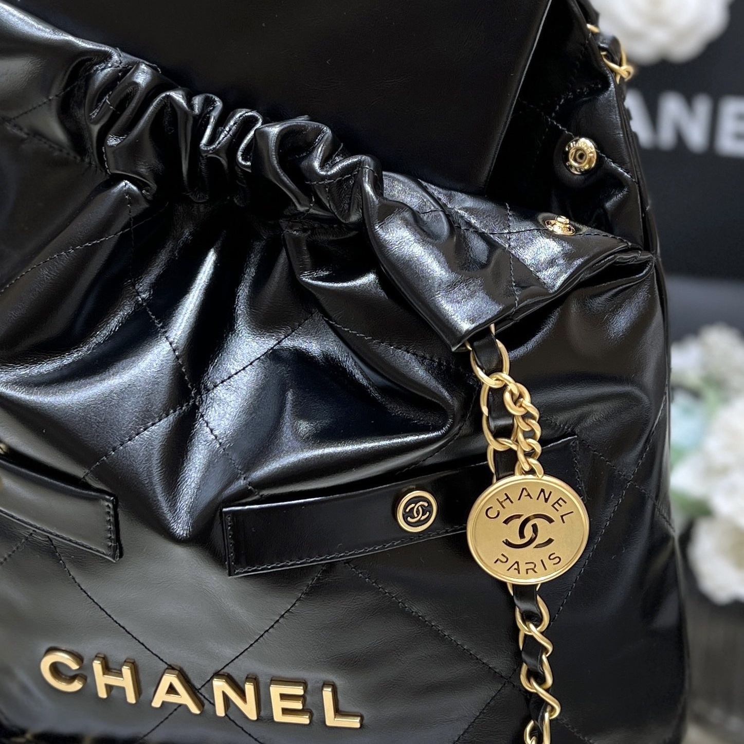 Cruise 2024/25 Material-Shiny Crumpled Calfskin & Gold-Tone Colors-Black Dimensions-35 x 37 x 7cm/13.8 x 14.6 x 2.8in