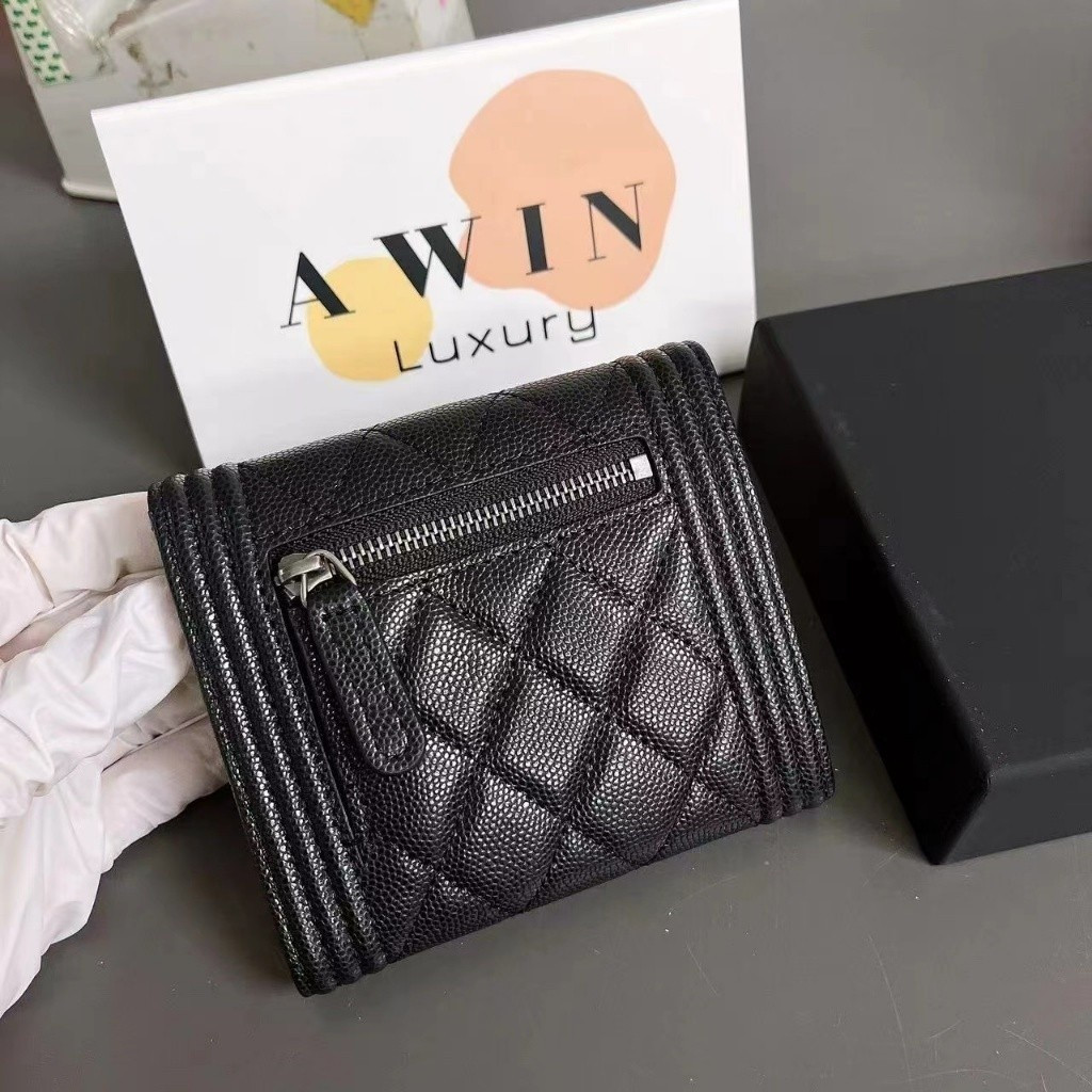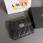 CHANEL LE BOY 11.5CM Calf leather wallet card bag for women