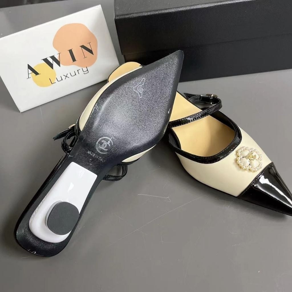 CHANEL Pointed Baotou slippers high heels