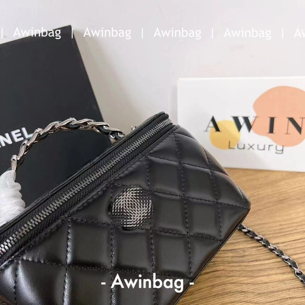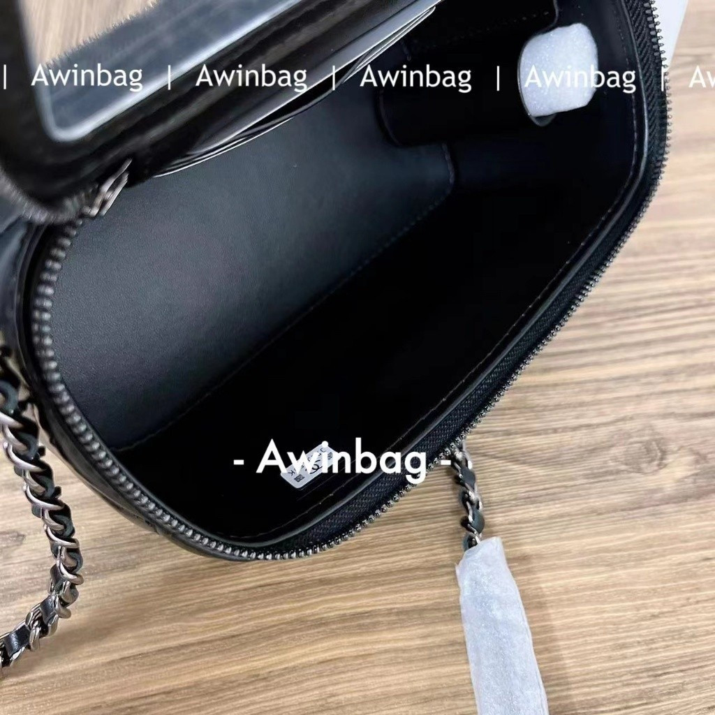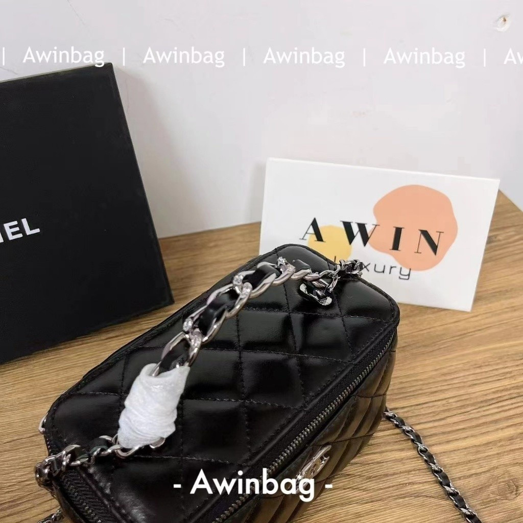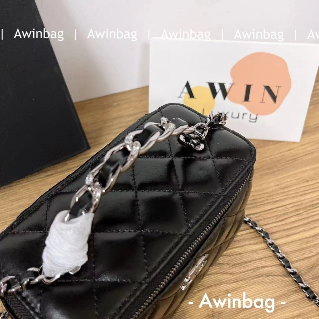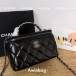 CHANEL Sheepskin Cosmetic Bag Shoulder Crossbody Handbag