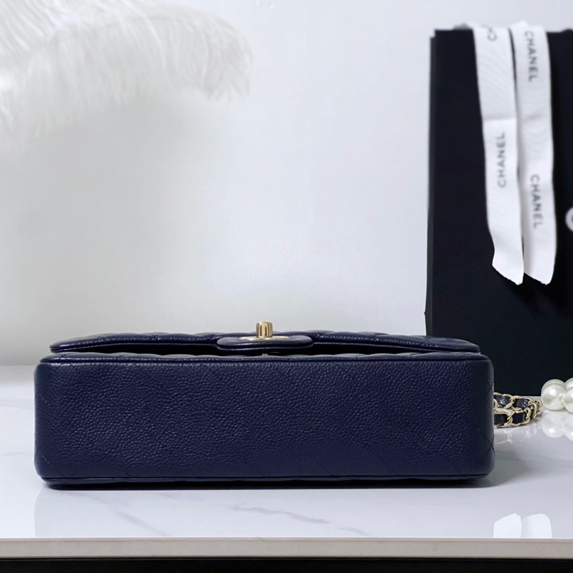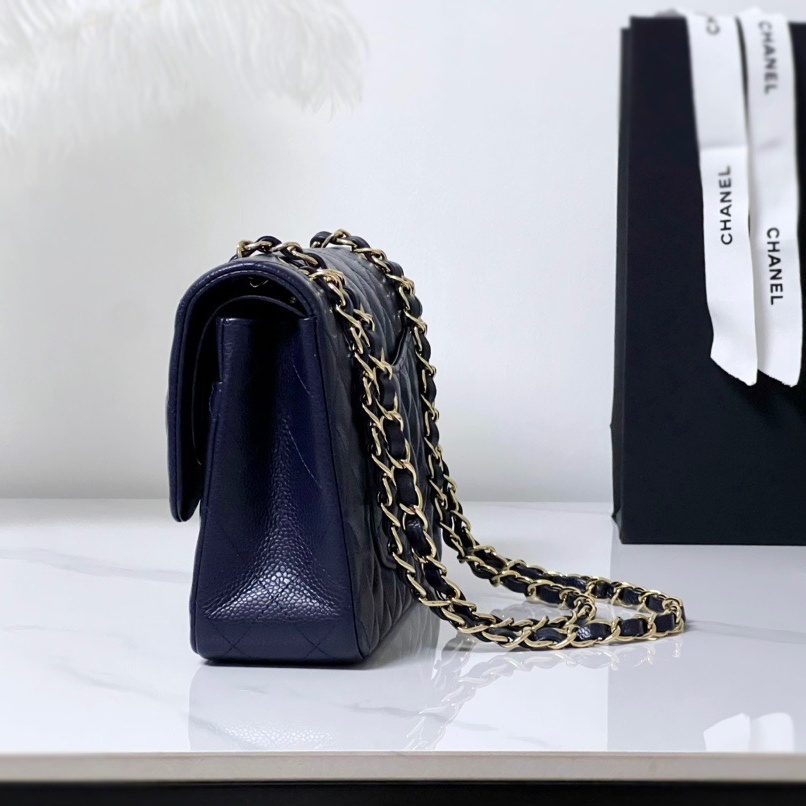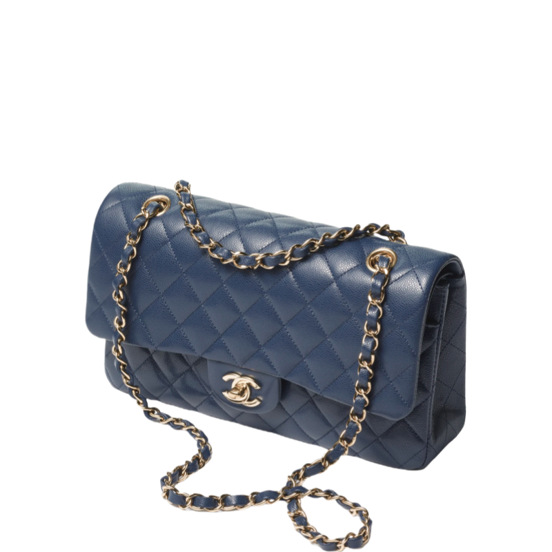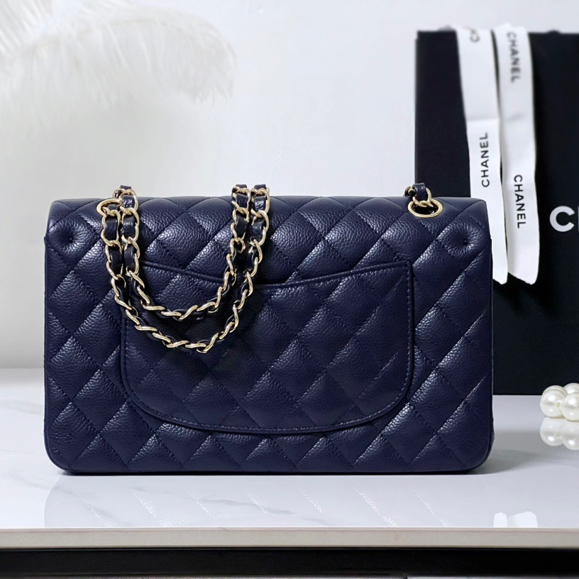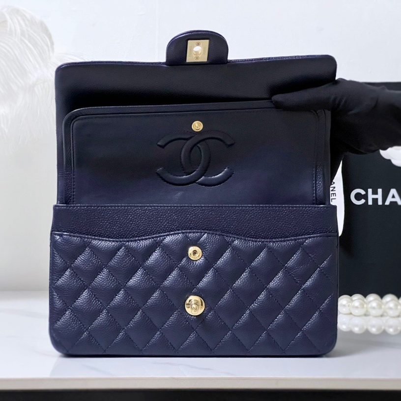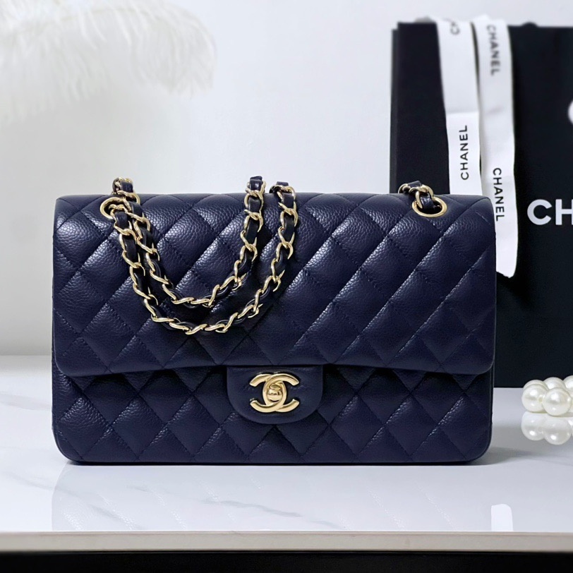 Cruise 2024/25 Material-Shiny Grained Calfskin & Gold-Tone Metal Colors-Dark Blue Dimensions-15.5 x 25.5 x 6.5cm/6.1 x 10 x 2.6in
