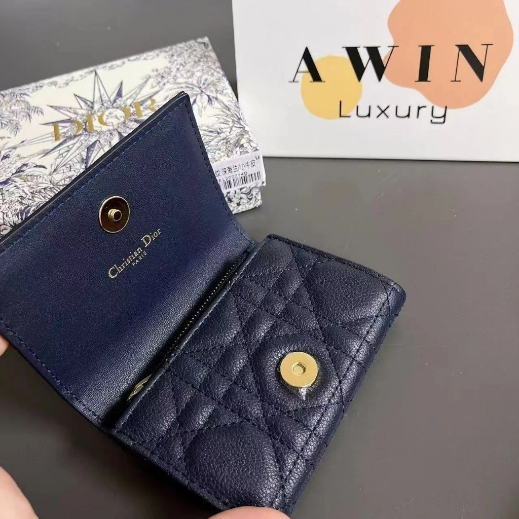 DIOR CARO 10.5CM Rattan Plaid calfskin wallet clip