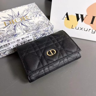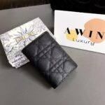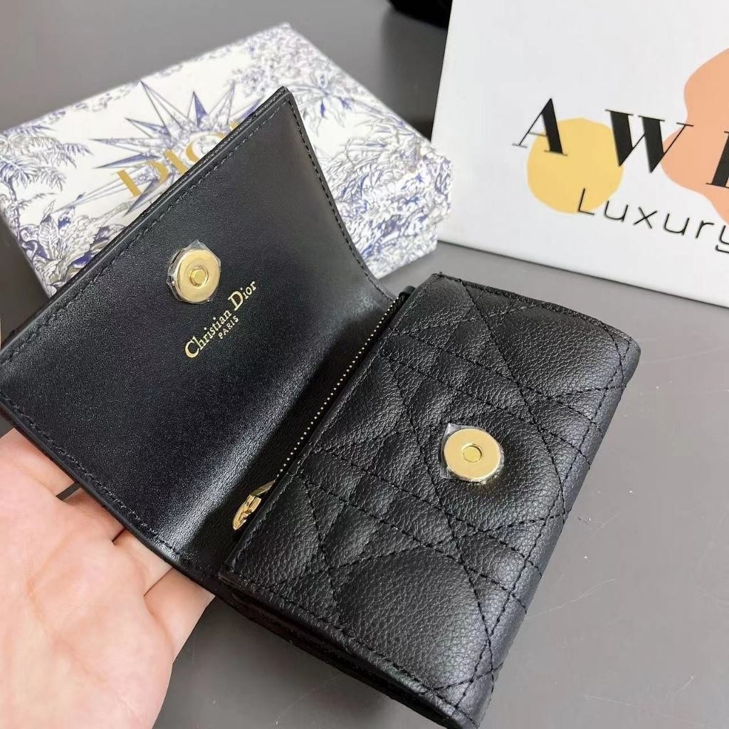 DIOR CARO 10.5CM Rattan Plaid calfskin wallet clip