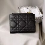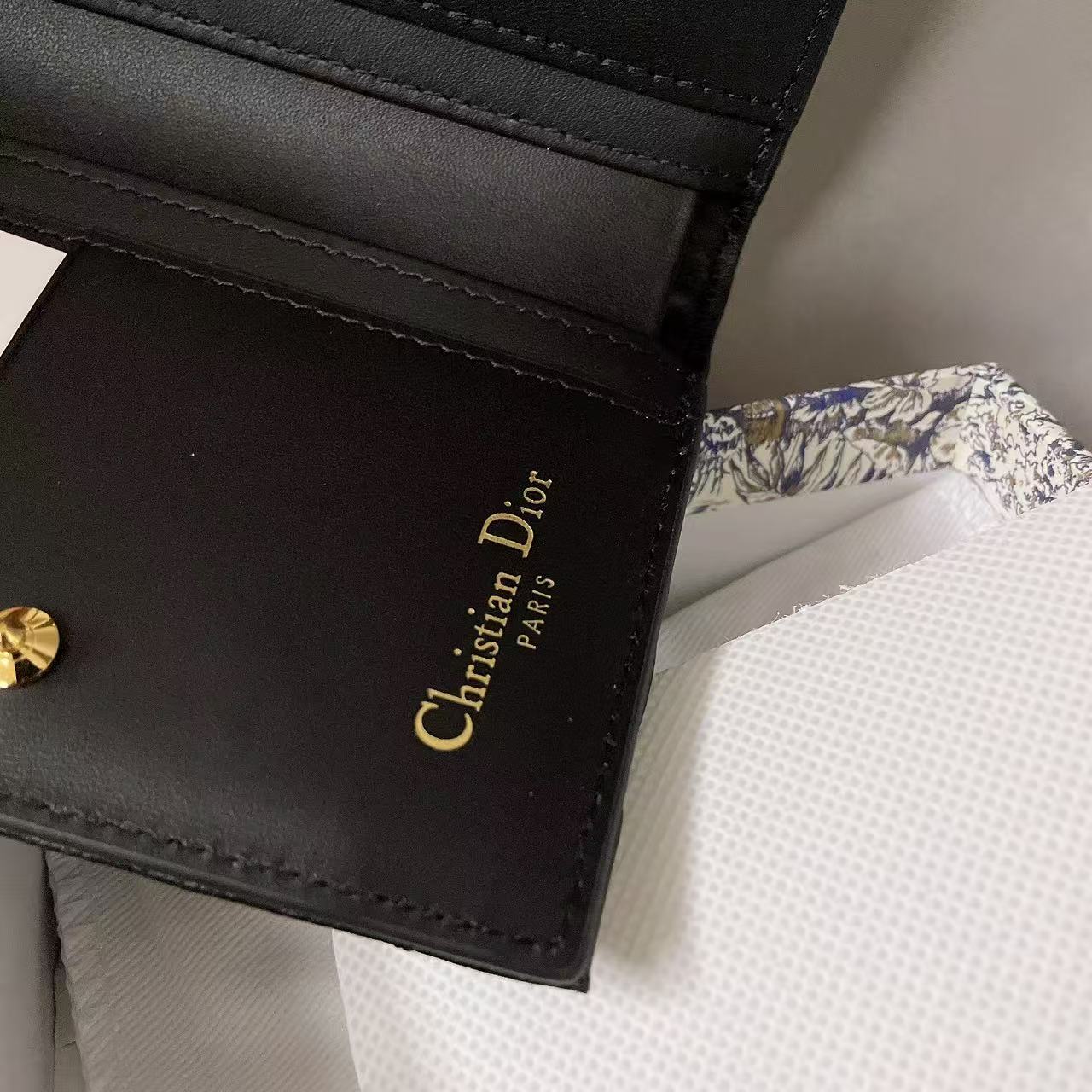 DIOR CARO CD buckle checkered calf leather wallet card bag for women