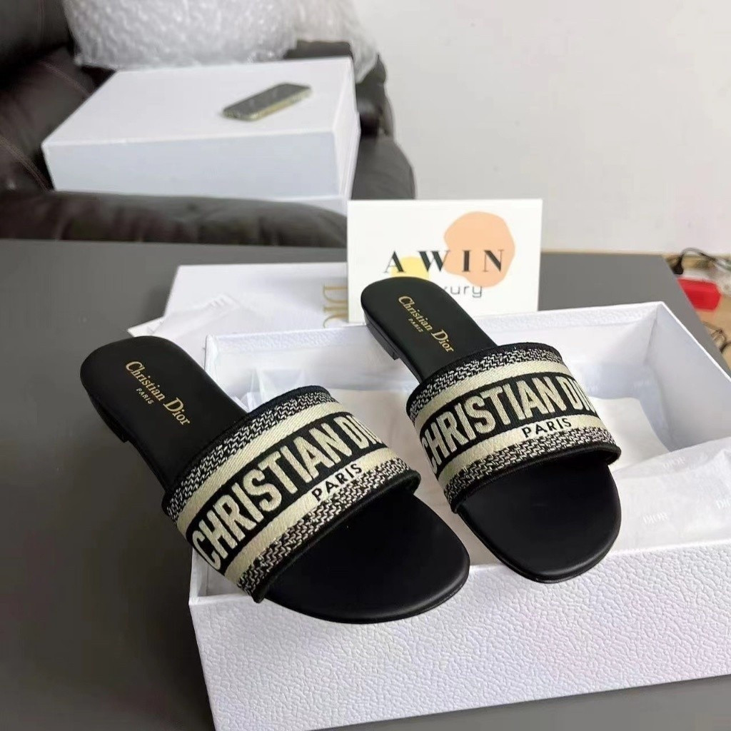 DIOR Dway Flat bottom embroidered round head flip flops for women