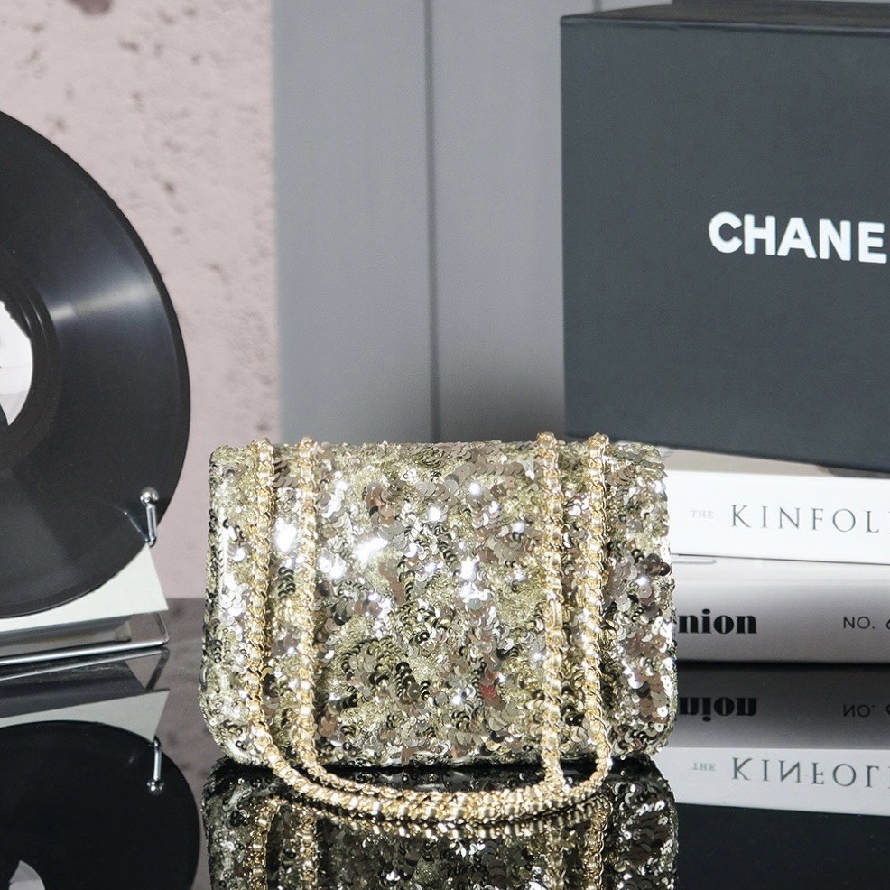 Cruise 2024/25 Material-Sequins & Silver-Tone Metal Colors-Golden Dimensions-14 x 21 x 8cm/5.5 x 8.3 x 3.1in