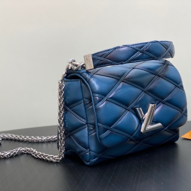 Part of the Fall-Winter 24 collection. this new compact edition of the GO-14 PM is set to become a day-to-night icon. Crafted from supple lambskin. it is adorned with the House's refined signature Malletage quilting and has less padding and a thinner chain compared to other GO-14 styles. The roomy interior is fitted with a flat pocket and mirror for makeup touch-ups.