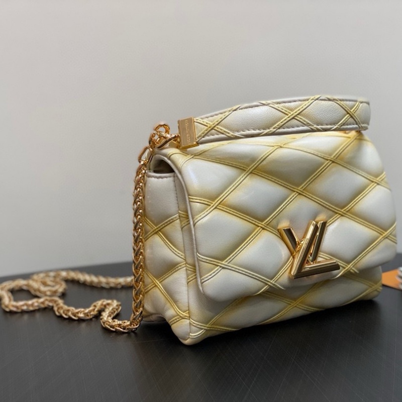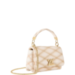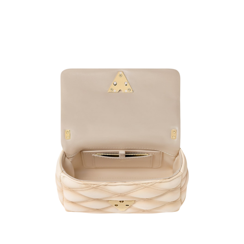 Part of the Fall-Winter 24 collection. this new compact edition of the GO-14 PM is set to become a day-to-night icon. Crafted from supple lambskin. it is adorned with the House's refined signature Malletage quilting and has less padding and a thinner chain compared to other GO-14 styles. The roomy interior is fitted with a flat pocket and mirror for makeup touch-ups.