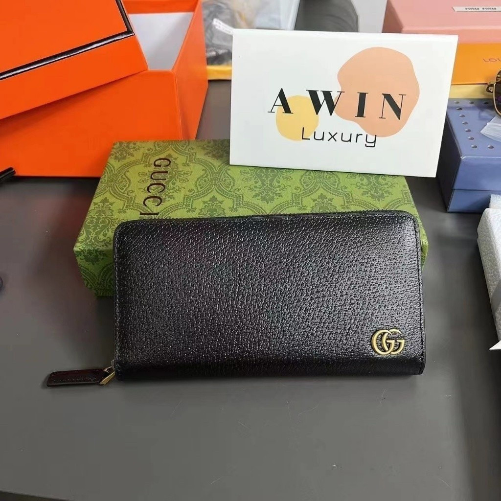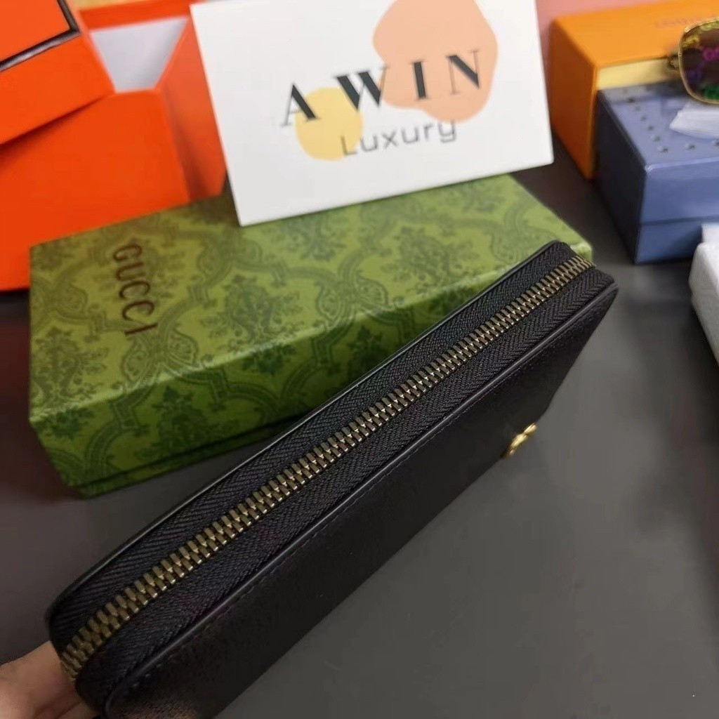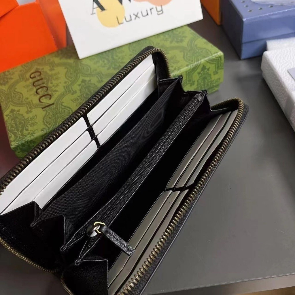 GUCCI 19CM Leather long zipper wallet for men