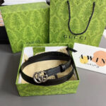 GUCCI Double g-buckle leather belt for men and women