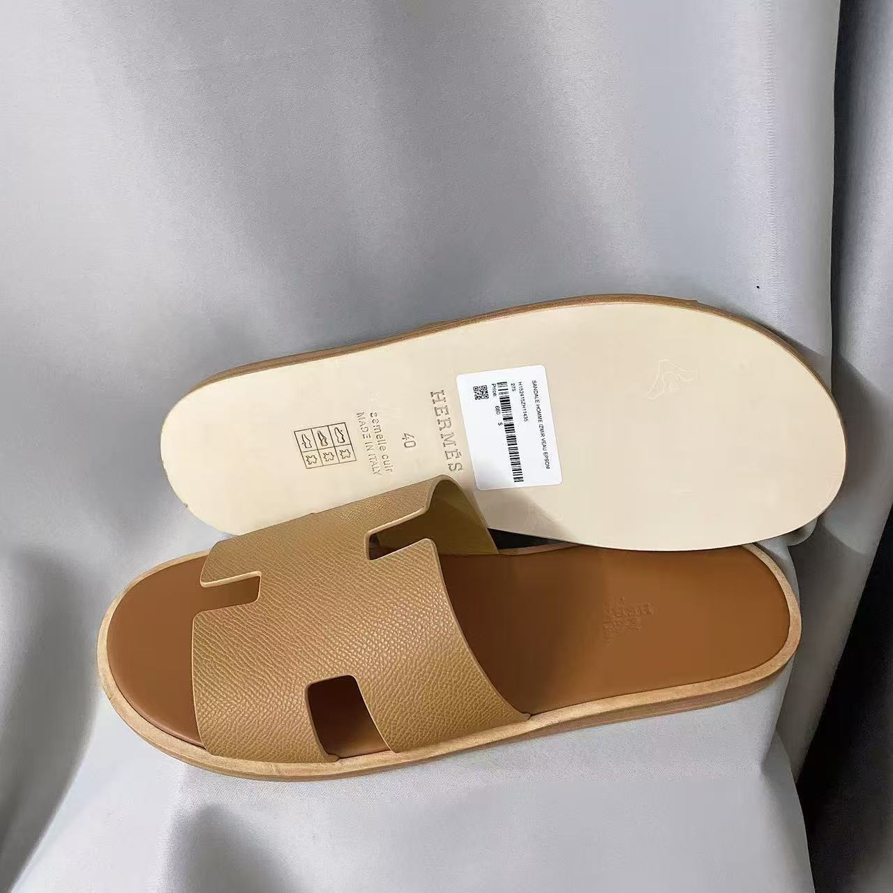 HERMES LZMIR Cowhide H-shaped flat bottomed straight slippers for men