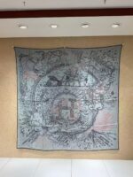 HERMES Pegasus Pattern Logo Letter Printed Mulberry Silk Scarf for Women 110X110CM