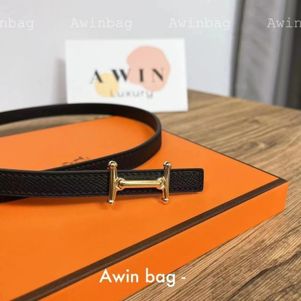 HERMES Smooth buckle leather belt for men and women