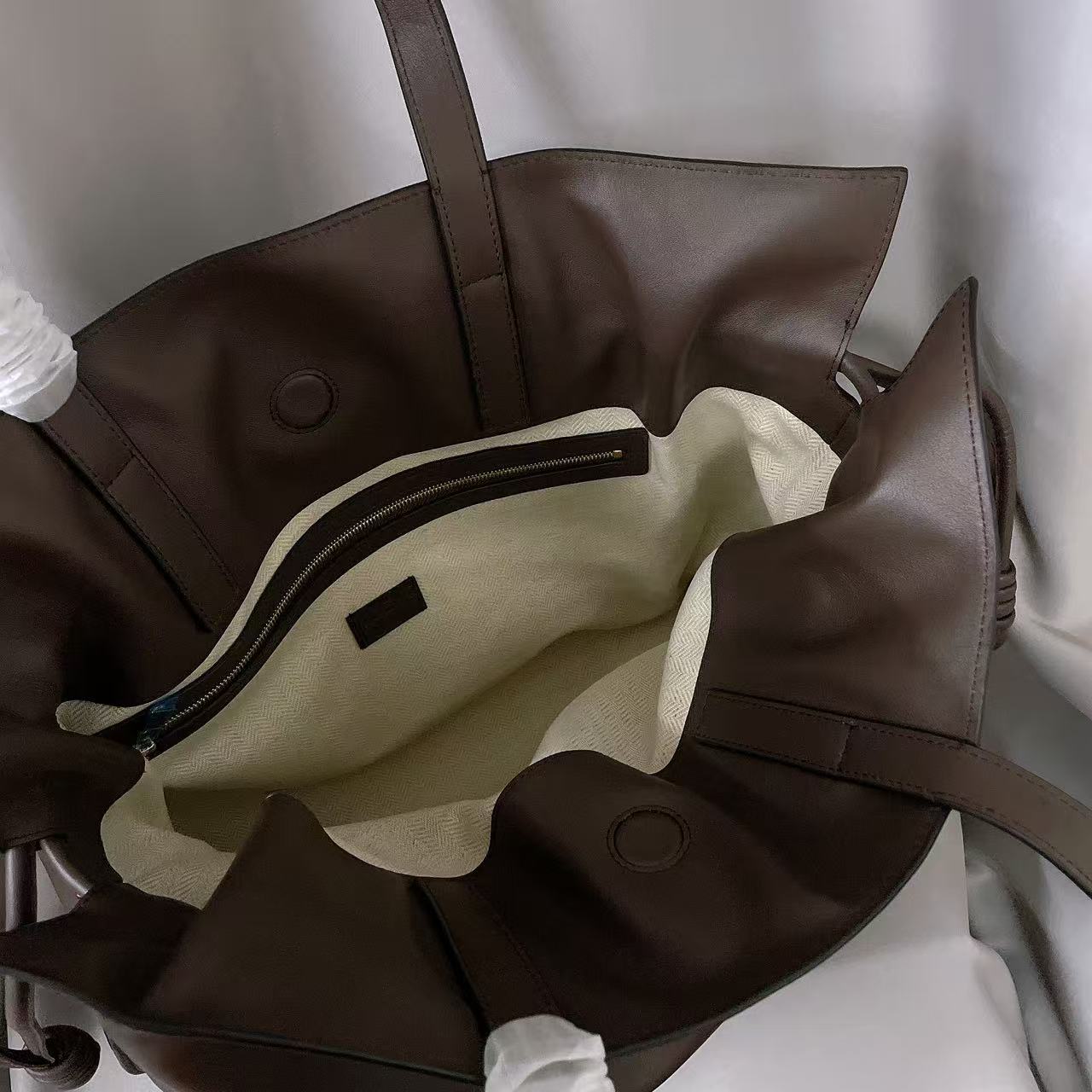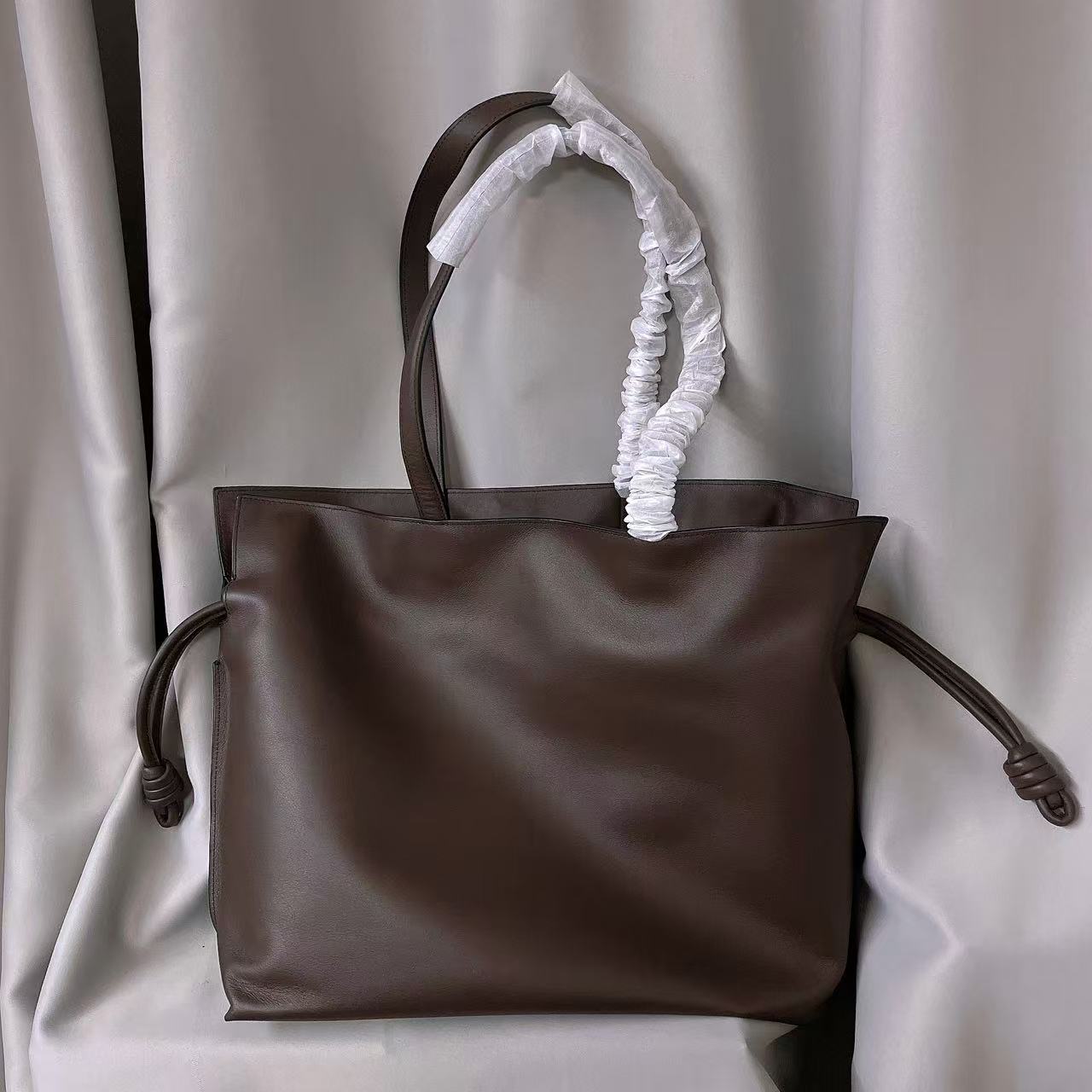 LOEWE FLAMENCO Fashionable leather drawstring closed hand-held one shoulder handbag chocolate colored women’s gift