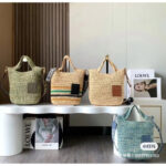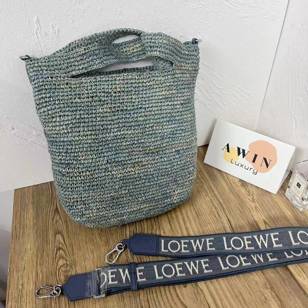 LOEWE Slit Tote raffia and cowhide leather handbag