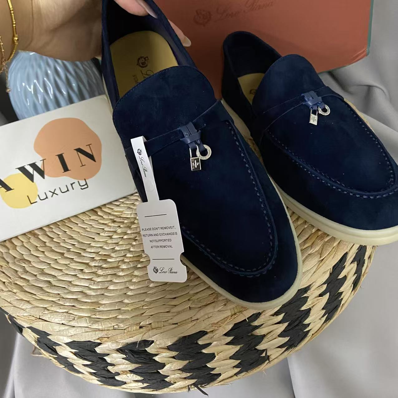 Loro Piana Summer Charms Walk Fashionable and comfortable round toe flat bottom anti slip single shoes, lazy shoes, casual shoes, dark blue, unisex, holiday gift