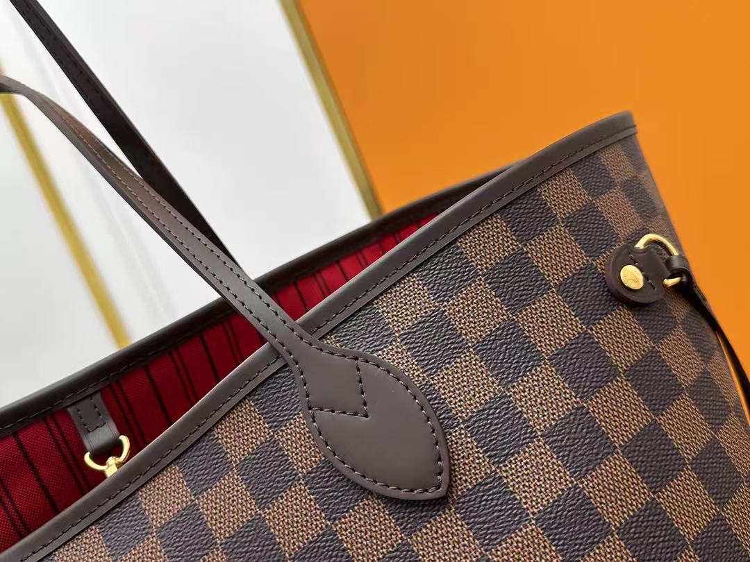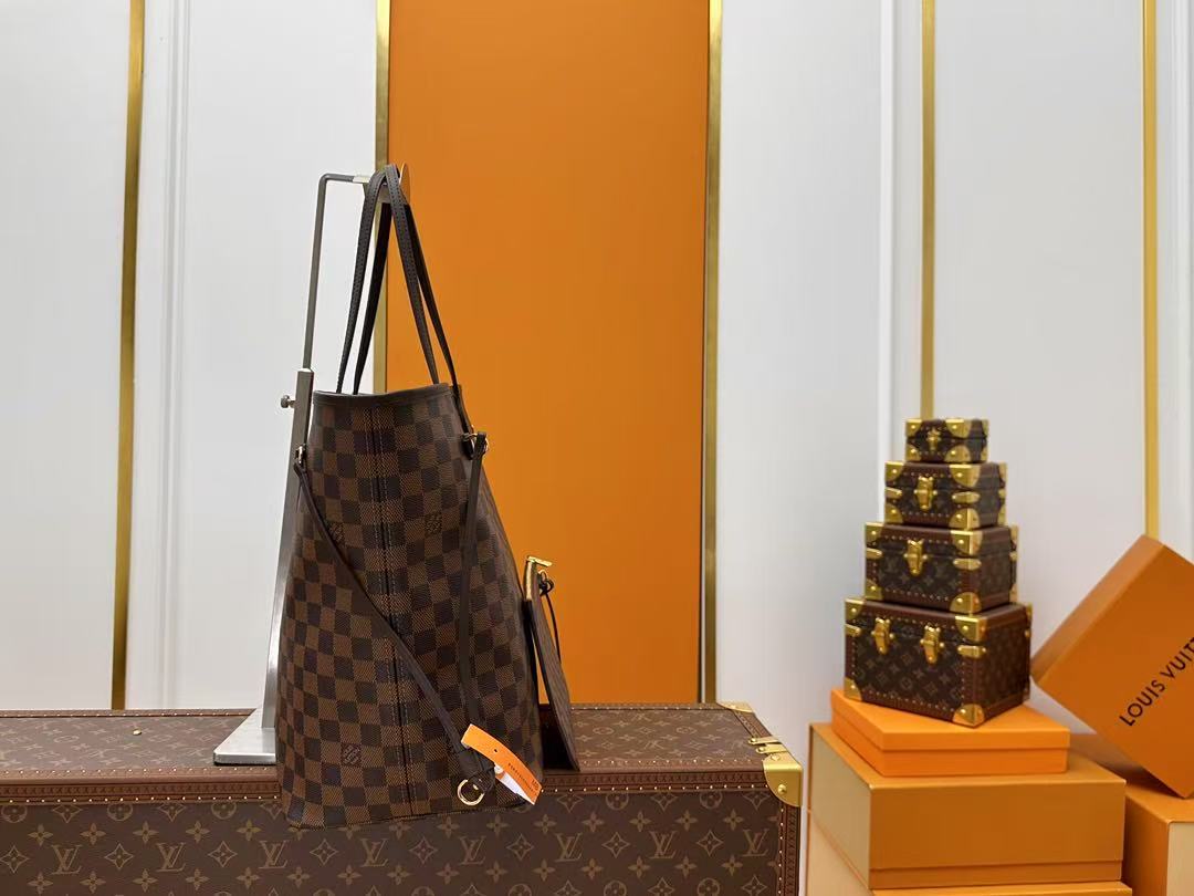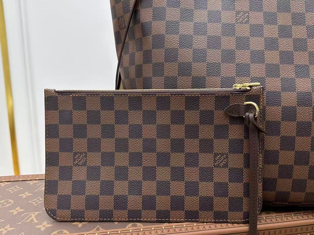 LOUIS VITTON NEVERFULL MM Checkered canvas patchwork leather tote bag shoulder bag handbag brown women’s holiday gift 39X32X19cm