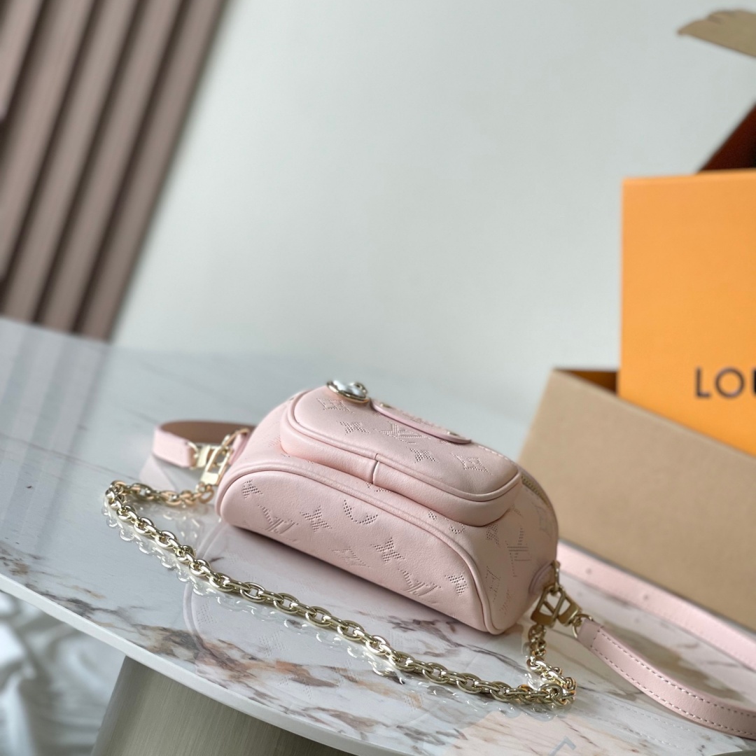This special edition of the Mini Bumbag belongs to the seasonal Flower Ring collection. Crafted from soft calf leather. it is decorated with the Monogram pattern and features a Monogram Flower pull on its zipped front pocket. Ideal for essentials. this go-anywhere piece offers the versatility of a removable chain and a removable. adjustable shoulder strap.