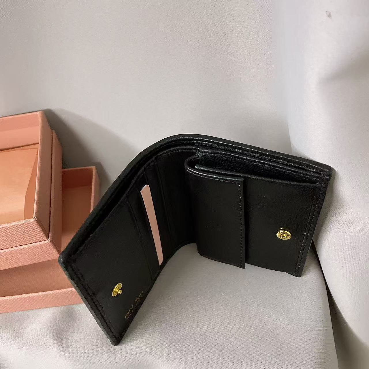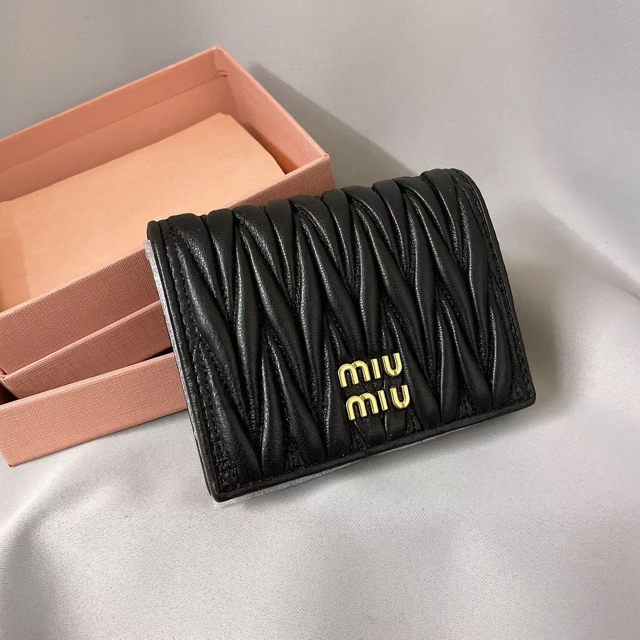 MIU MIU Matelasse Metal engraved stitched leather wallet, women’s holiday gift