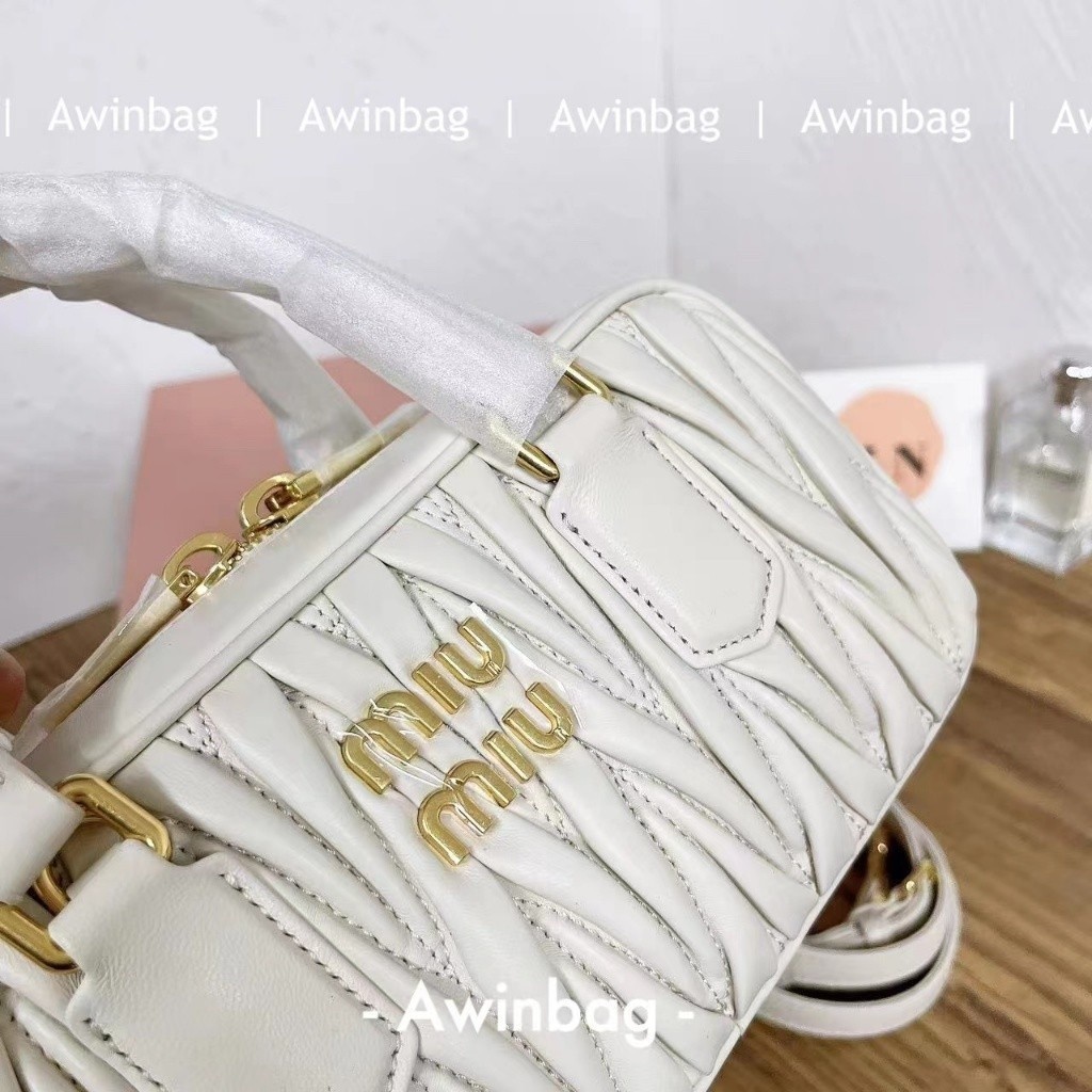 MIUMIU Arcadie matelasse metal lettering logo shoulder crossbody handbag