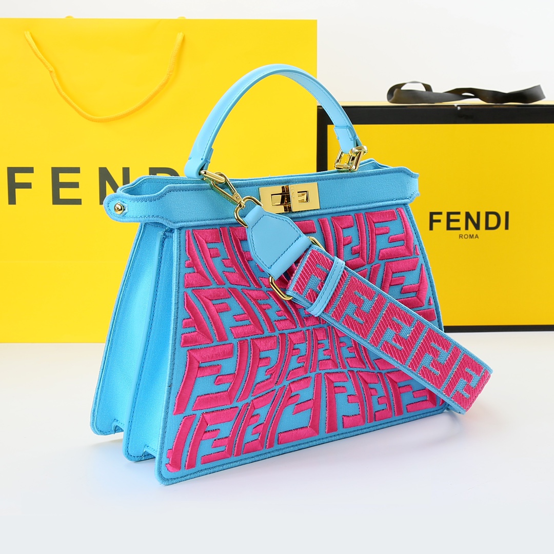 Fendi collaborates with New York contemporary artist Sarah Coleman to present a limited series of handbags for Miami Design Week. Based on the Peekaboo ISeeU organza bag. the bag features a twisted and distorted FF Logo totem through embroidery. leather embossing. and most especially a luminous material inspired by the retro-futuristic aesthetics of the 20th Century's Space Race era.