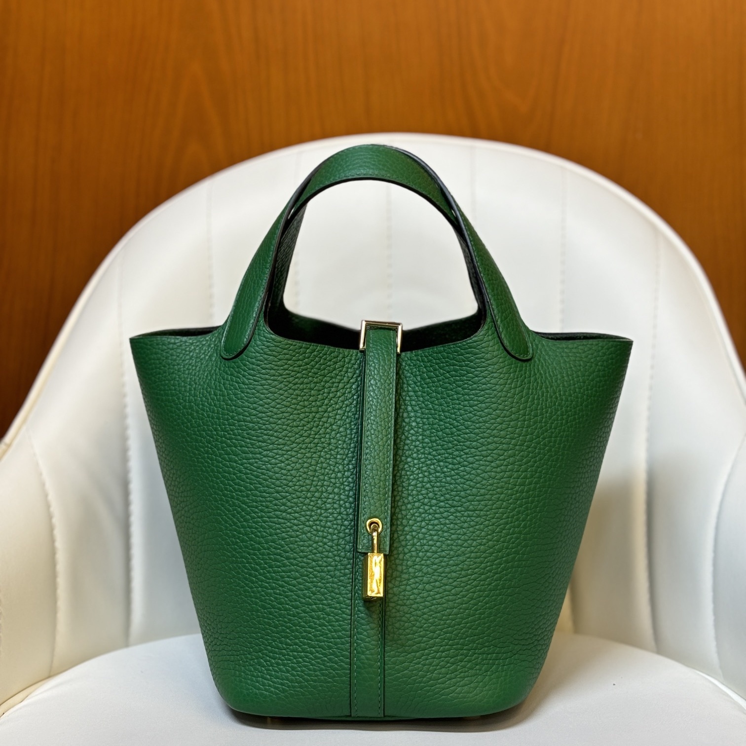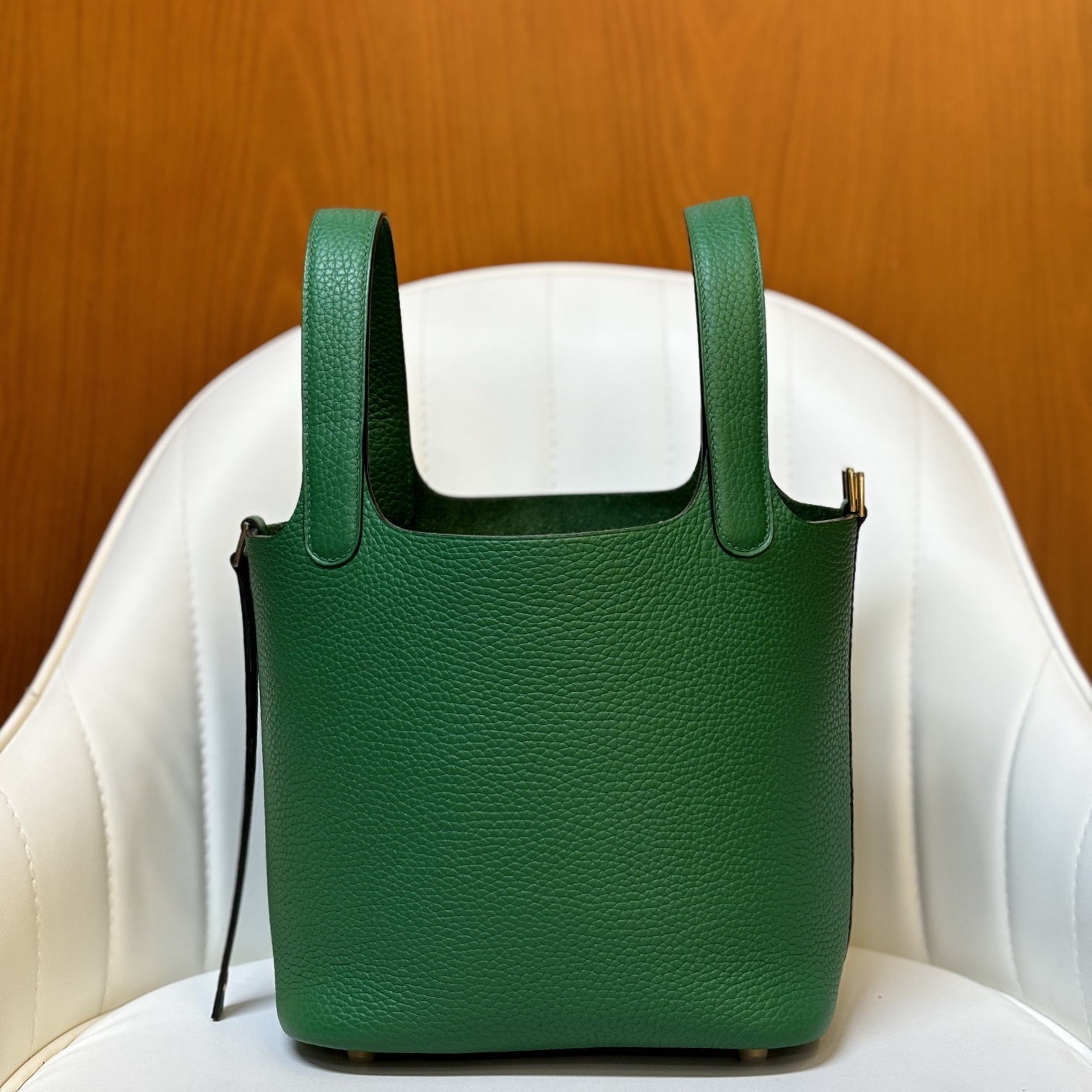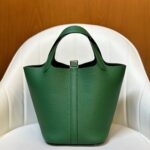 Clemence leather is one of the most iconic leathers for Picotin Lock bags. It is smooth and glossy. The leather is soft. It's relatively lightweight. soft to the touch and hardwearing.