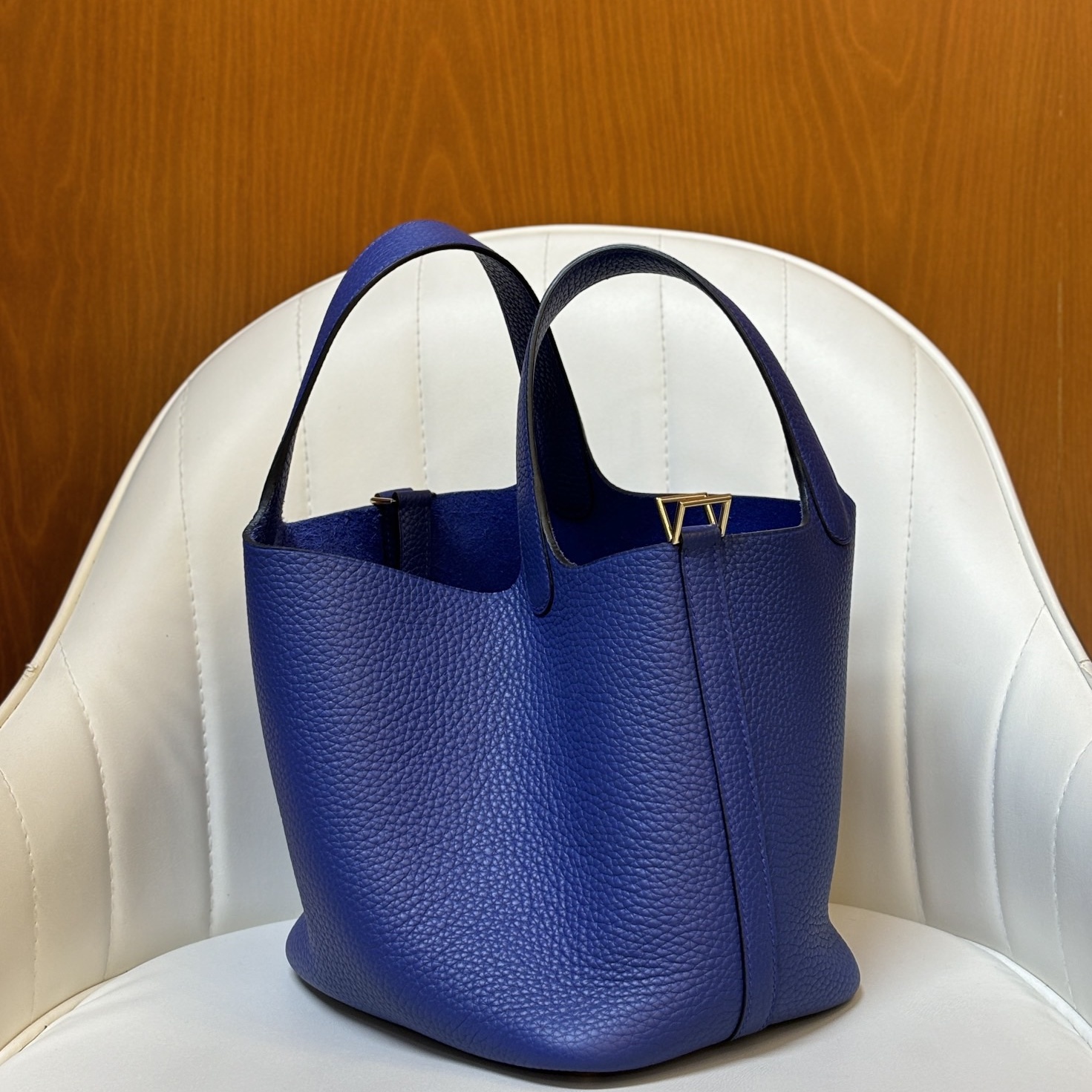 Clemence leather is one of the most iconic leathers for Picotin Lock bags. It is smooth and glossy. The leather is soft. It's relatively lightweight. soft to the touch and hardwearing.