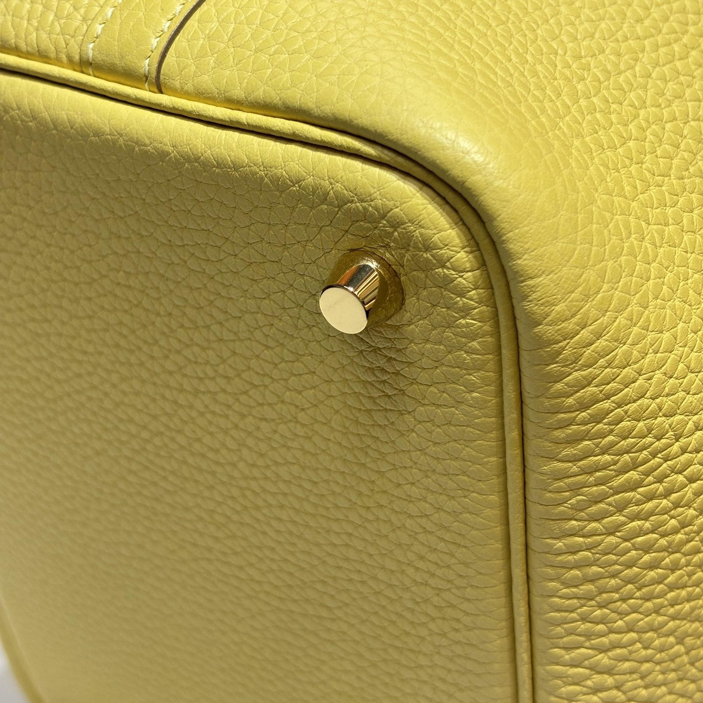 Clemence leather is one of the most iconic leathers for Picotin Lock bags. It is smooth and glossy. The leather is soft. It's relatively lightweight. soft to the touch and hardwearing.