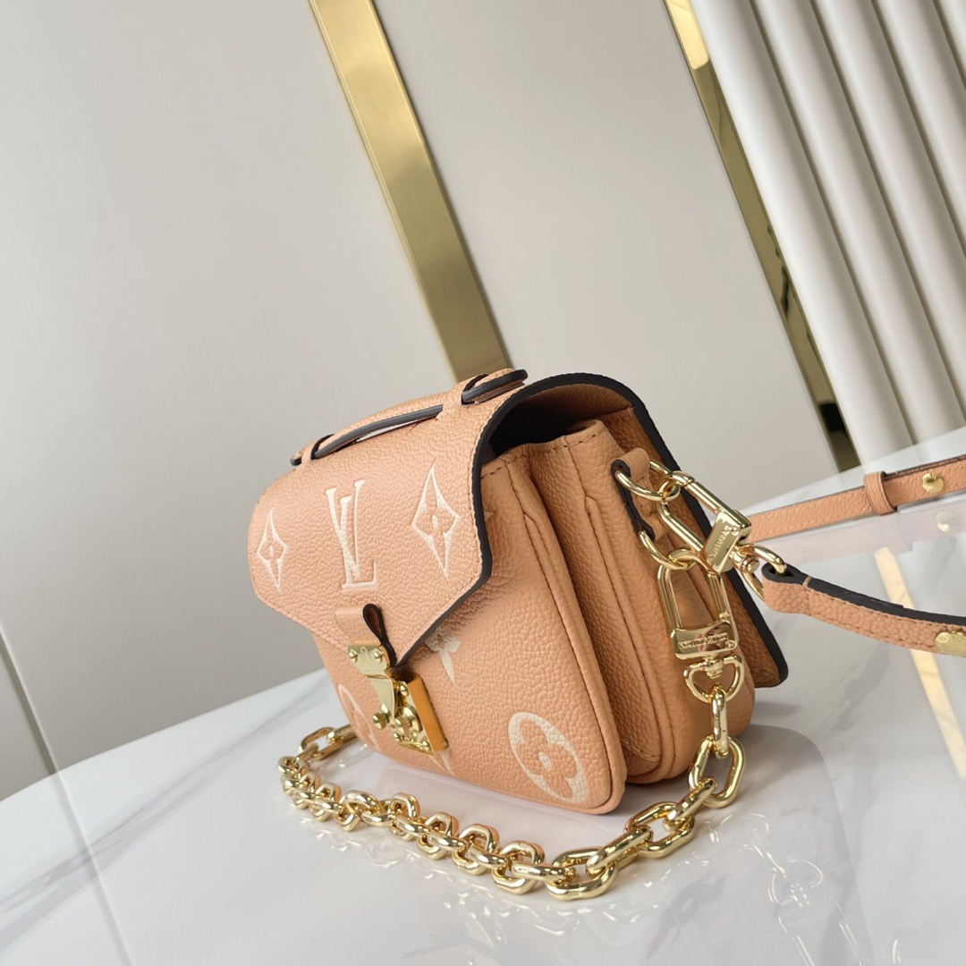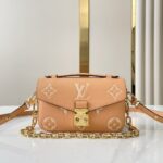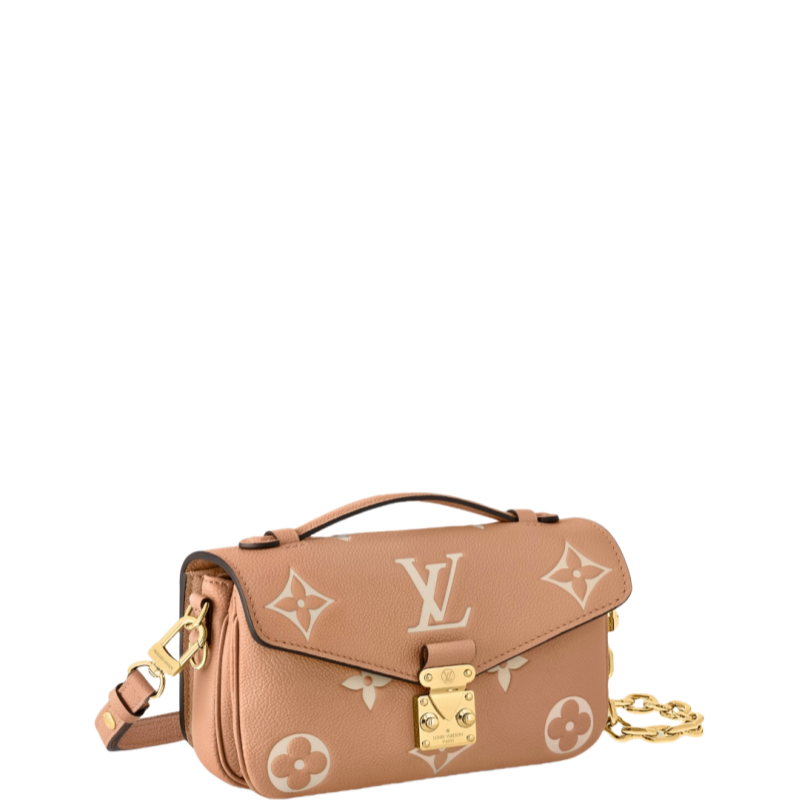 Designed in an elegant bicolor palette. this edition of the Pochette Métis East West blends heritage craftsmanship with contemporary detailing. It is crafted from Monogram Empreinte leather and is finished with gleaming gold-toned hardware. including a signature S-lock closure. The organized interior offers three compartments with a central zipped pocket. and another placed on the back.