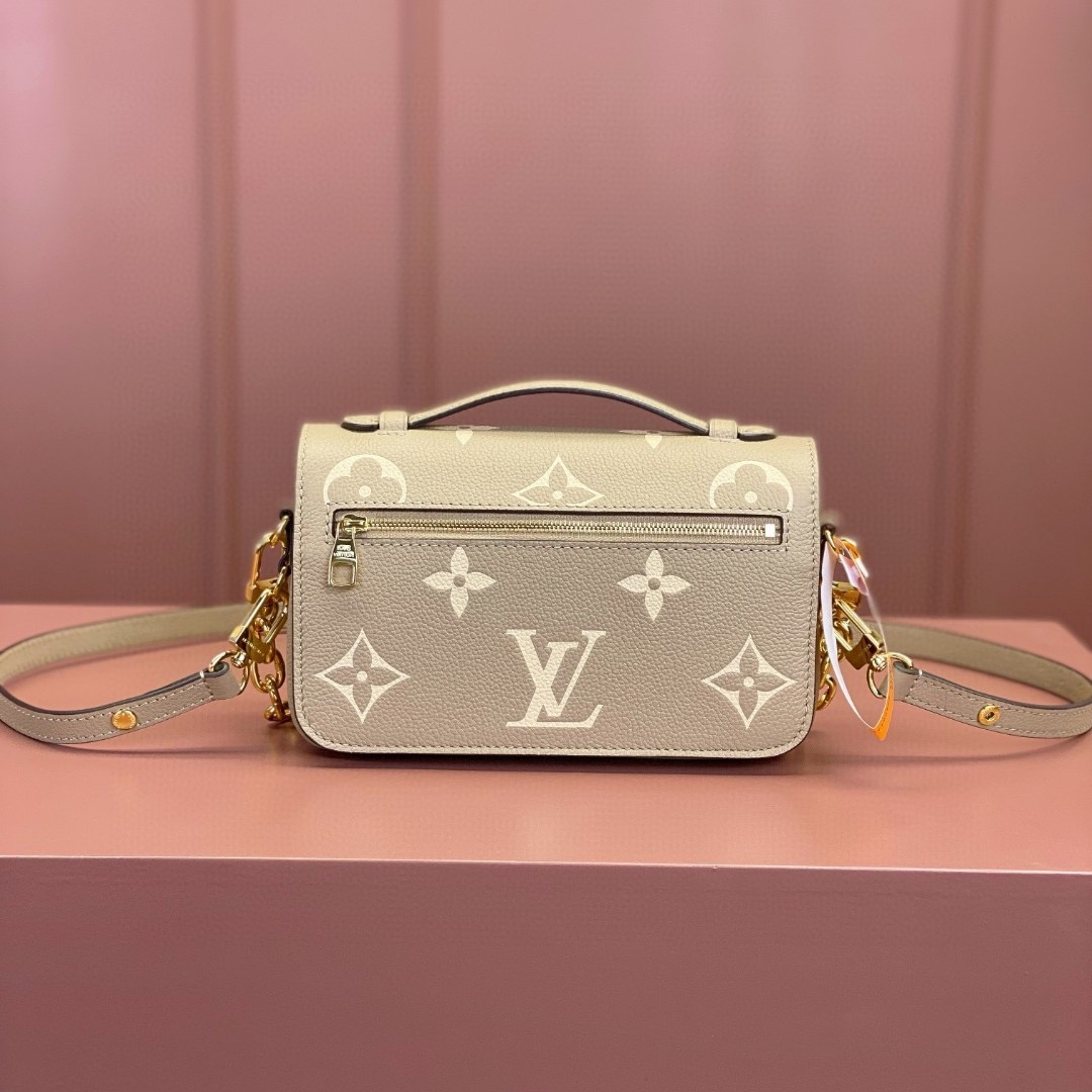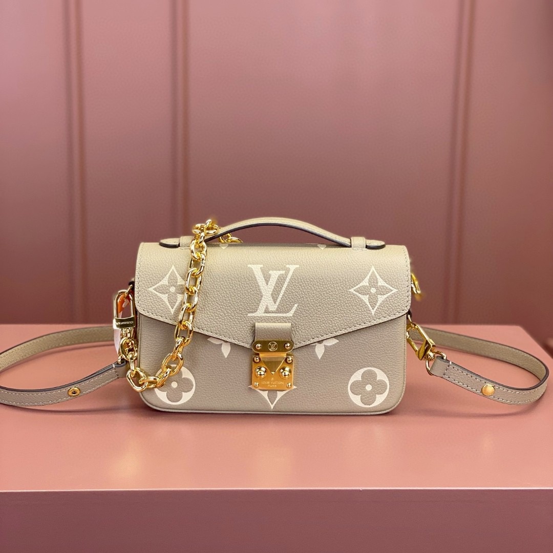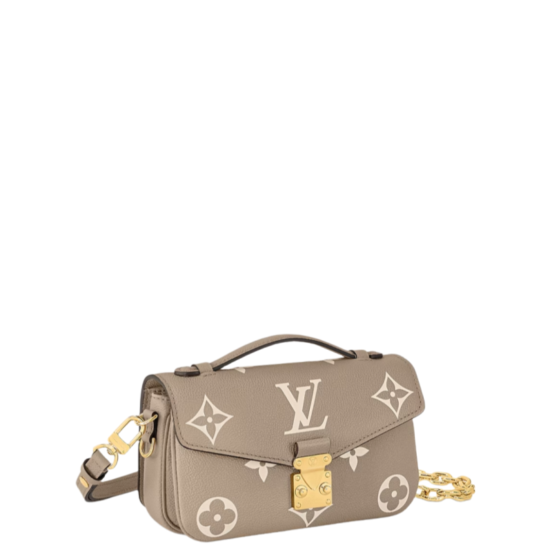 Crafted from Monogram Empreinte leather. with its embossed Monogram pattern. the Pochette Metis East West handbag blends classic Louis Vuitton design codes with contemporary details. The S-lock and top handle evoke the House's historic trunks while the compact proportions and removable chain. perfect for short shoulder carry. bring an up-to-the minute feel.