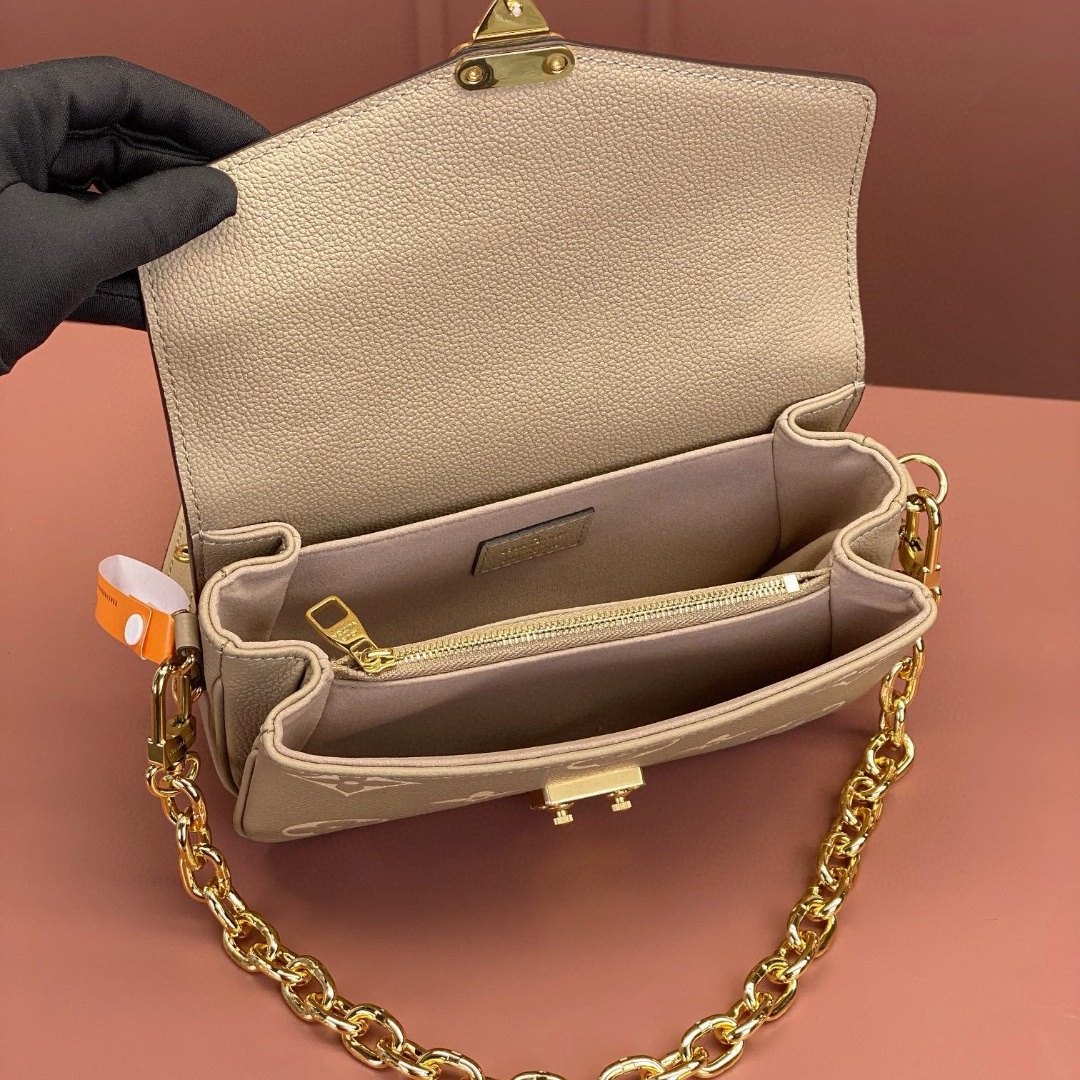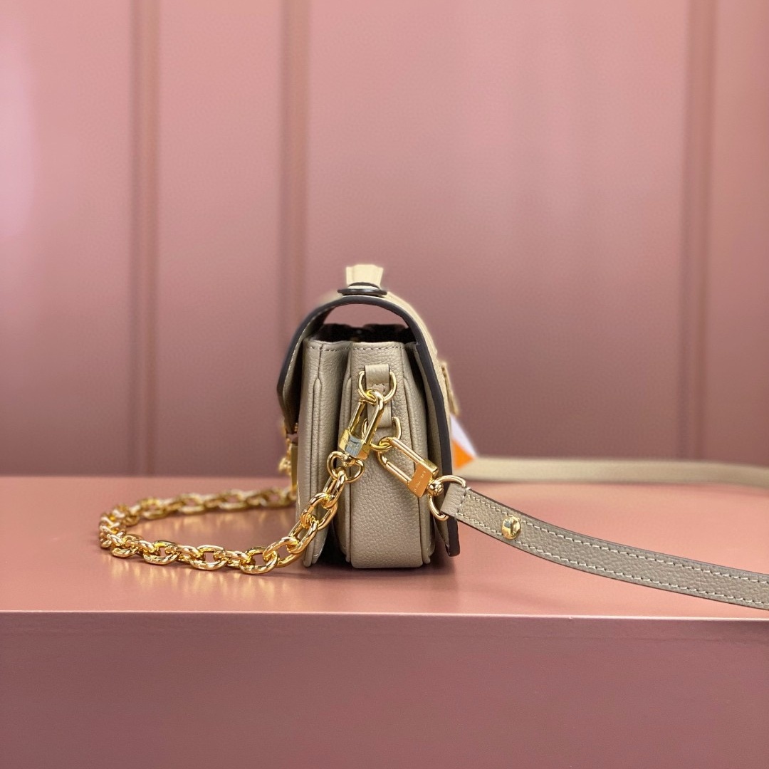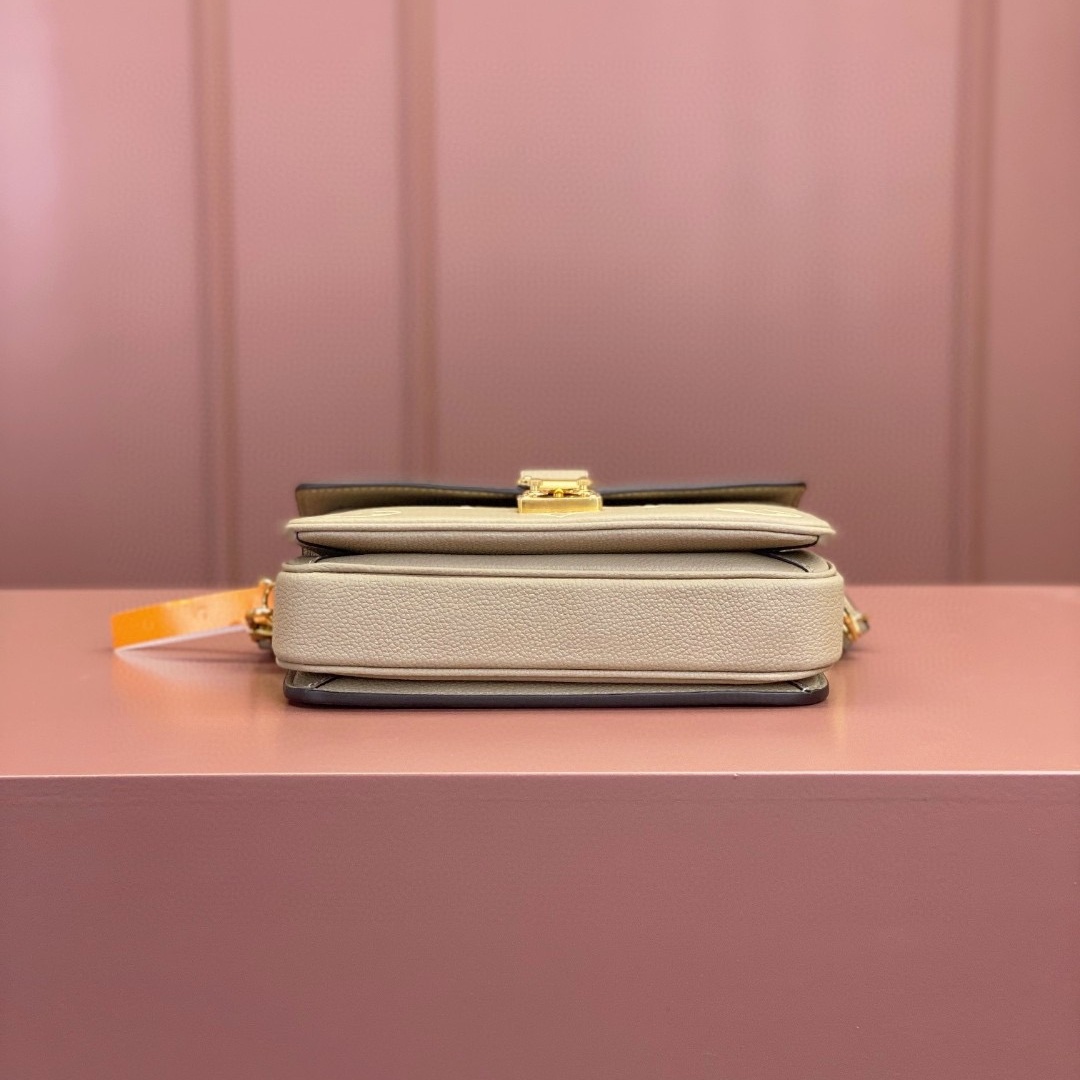 Crafted from Monogram Empreinte leather. with its embossed Monogram pattern. the Pochette Metis East West handbag blends classic Louis Vuitton design codes with contemporary details. The S-lock and top handle evoke the House's historic trunks while the compact proportions and removable chain. perfect for short shoulder carry. bring an up-to-the minute feel.