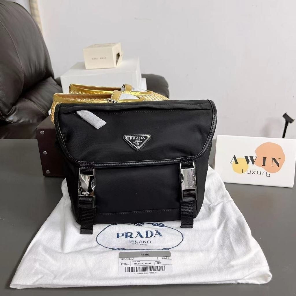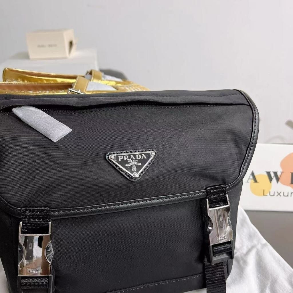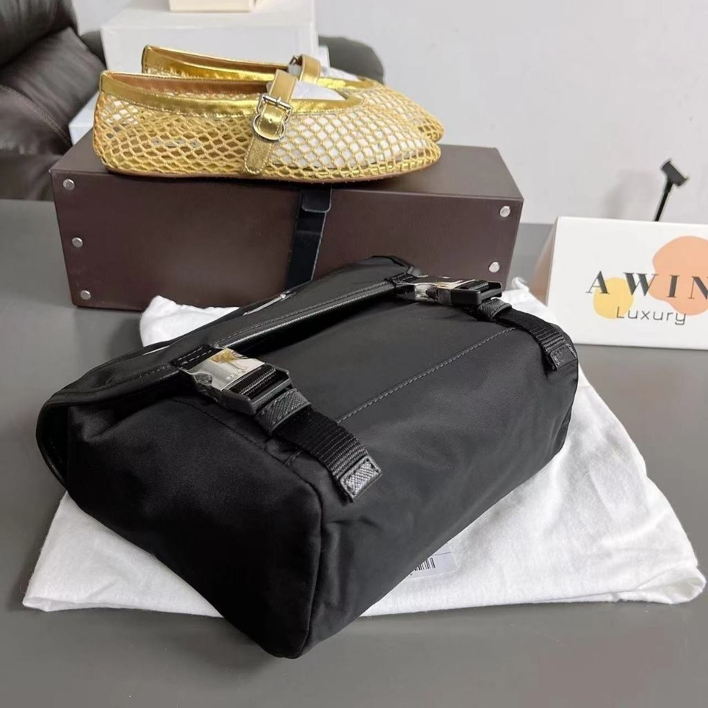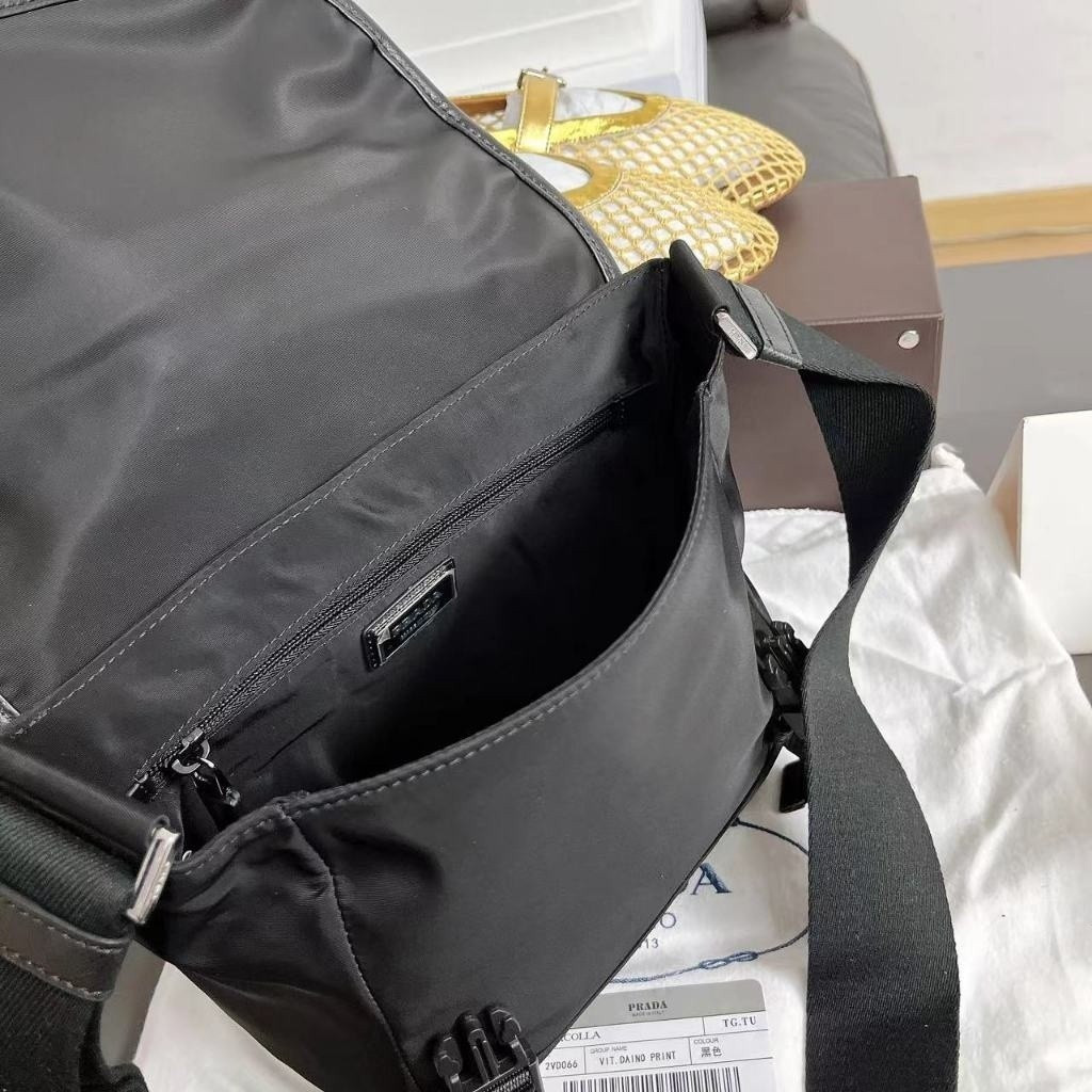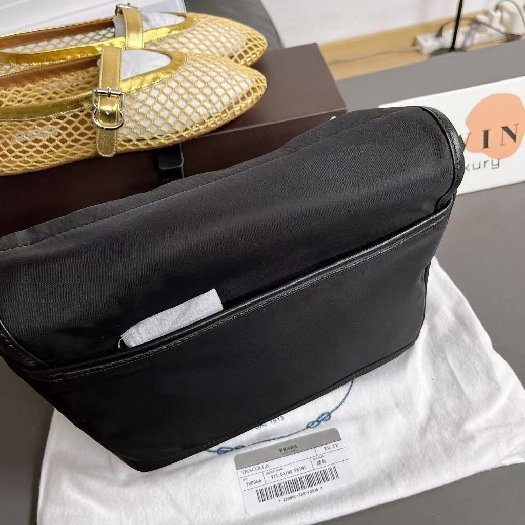 PRADA 20CM Nylon patchwork Safina leather crossbody shoulder bag