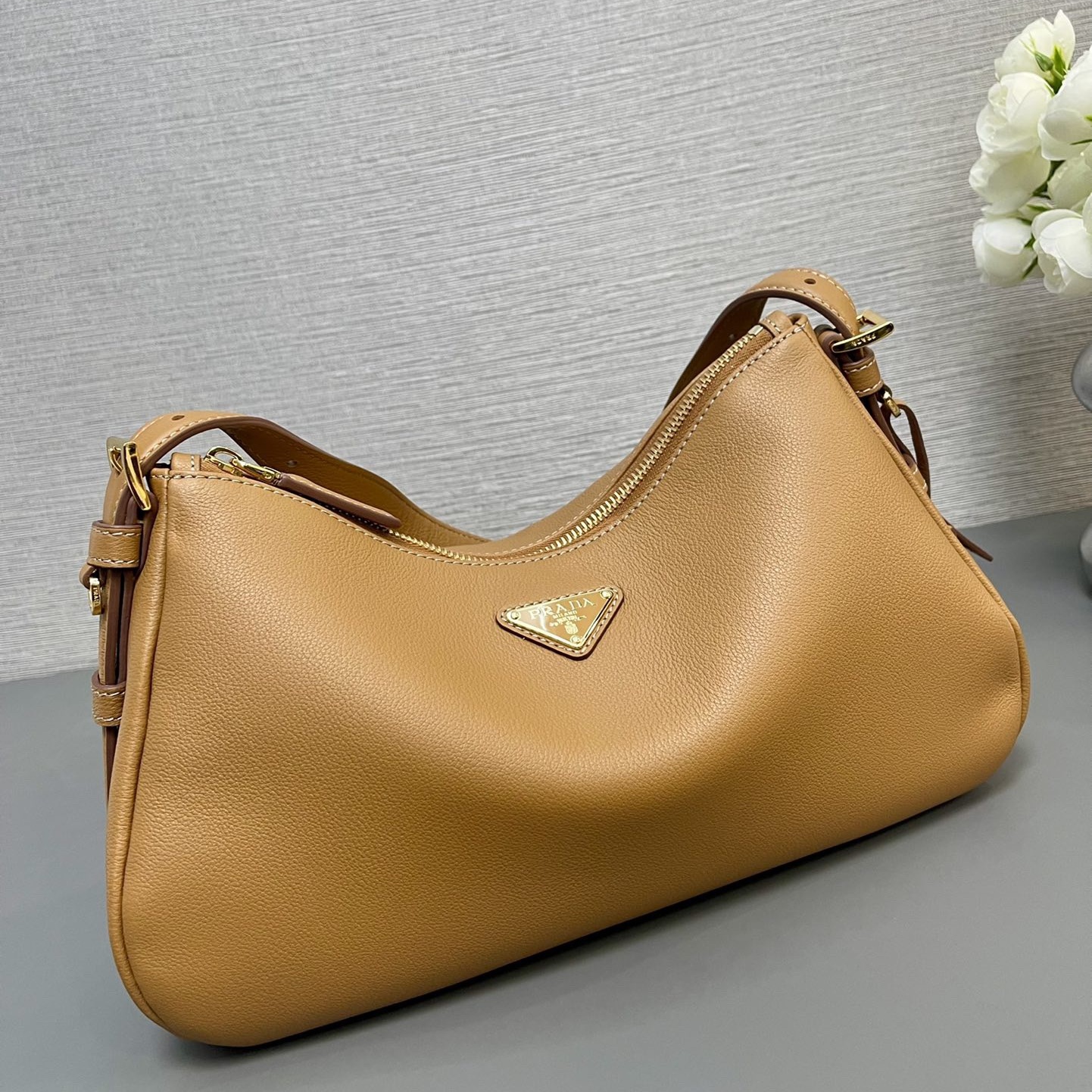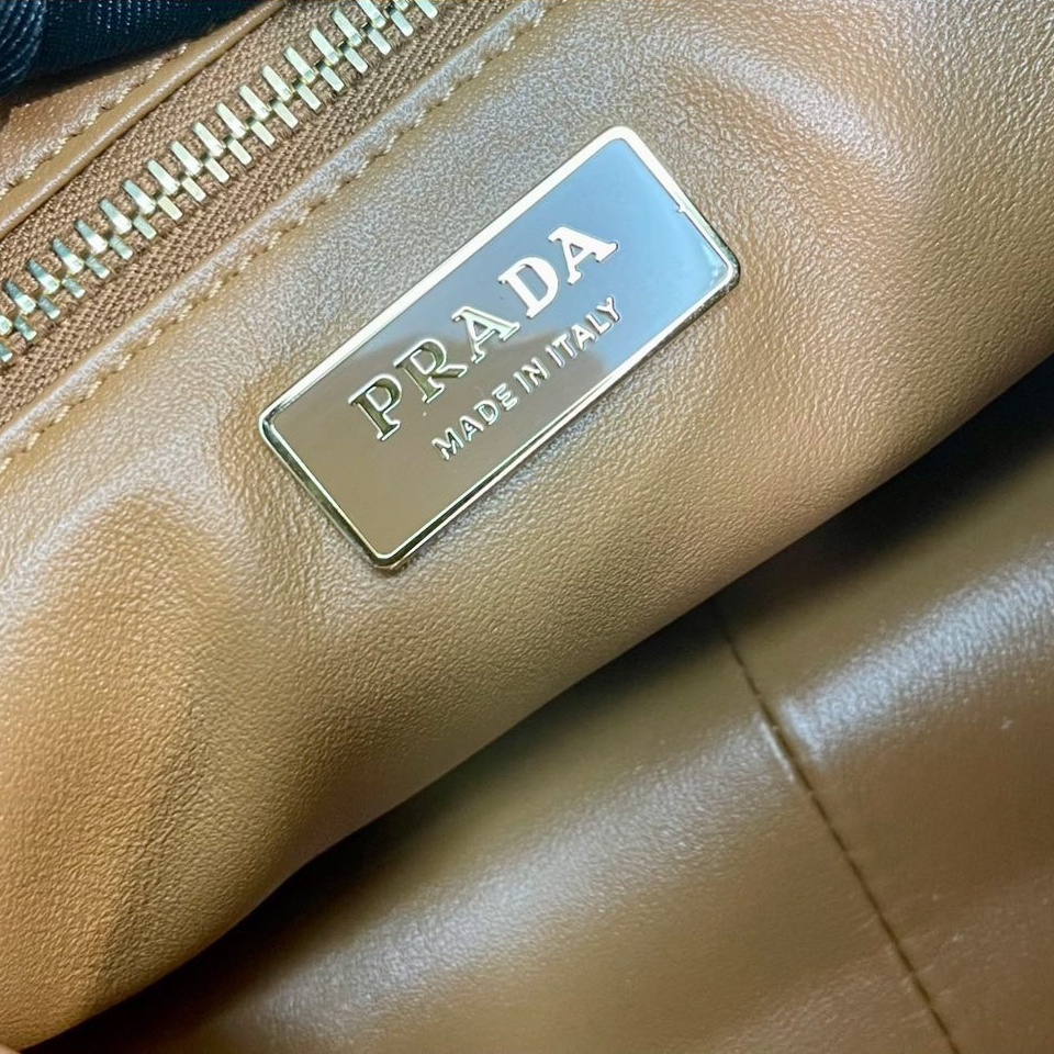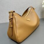 The sophisticated minimalism of the '90s inspires the new Prada Aimée bag. portrayed in the Fall/Winter 2024 Campaign. The design evokes the instinctive gesture of holding a bag with its soft silhouette. created for effortless wear on the shoulders or cross-body.
