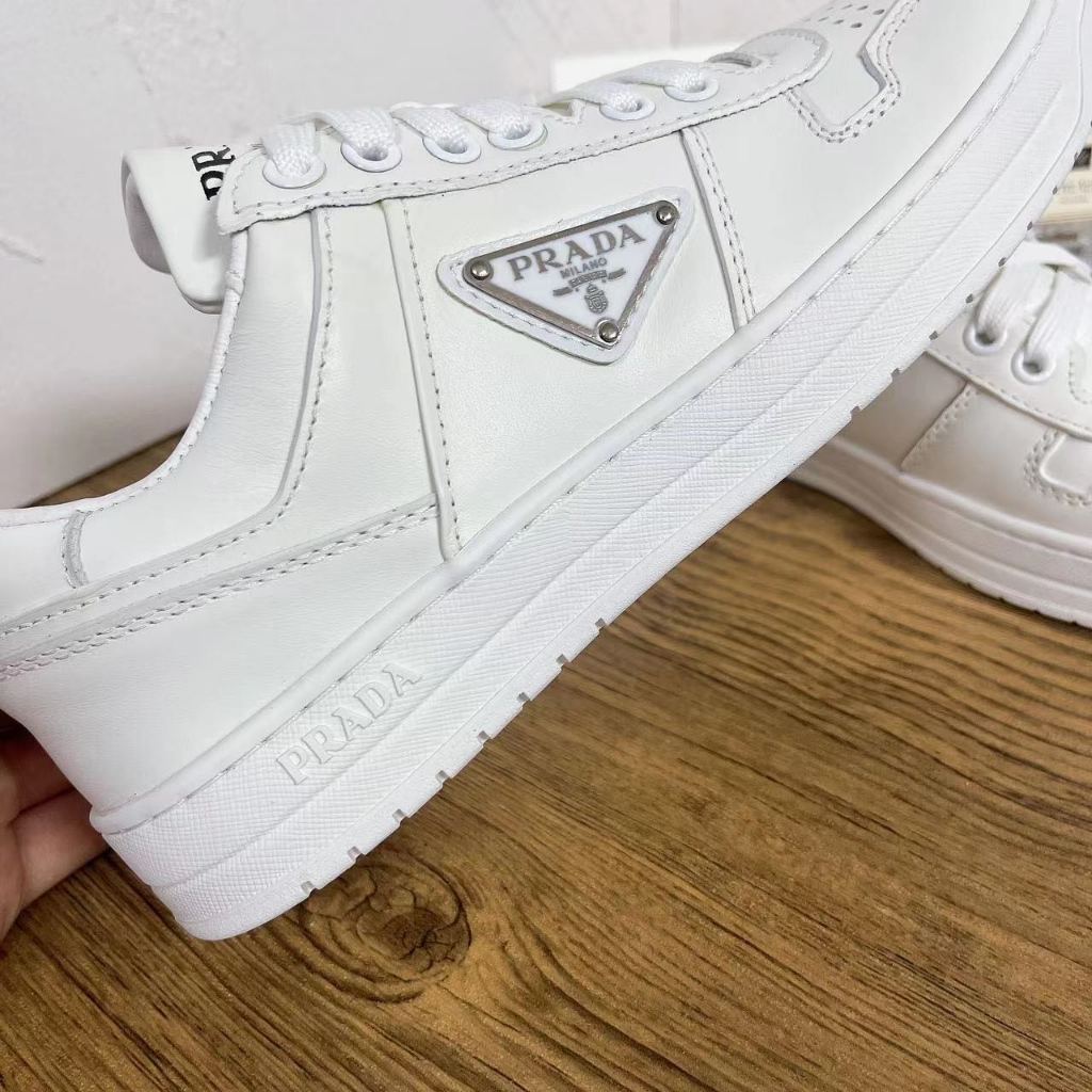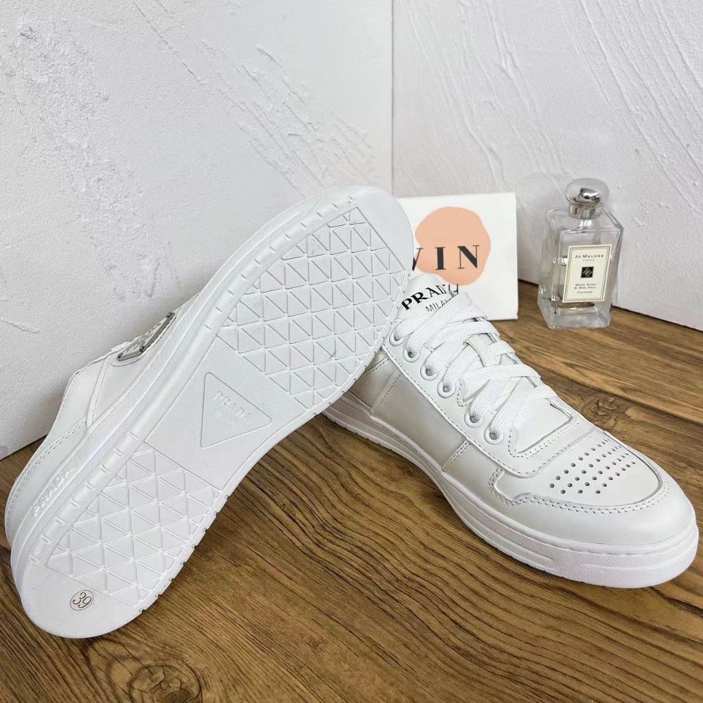 PRADA Downtown Leather flat bottom lace up low top board shoes