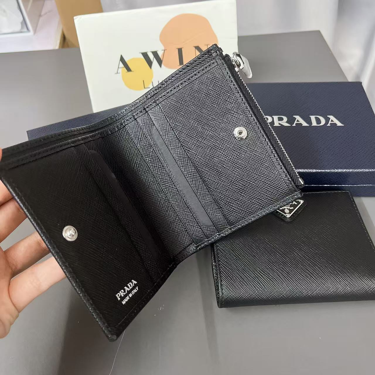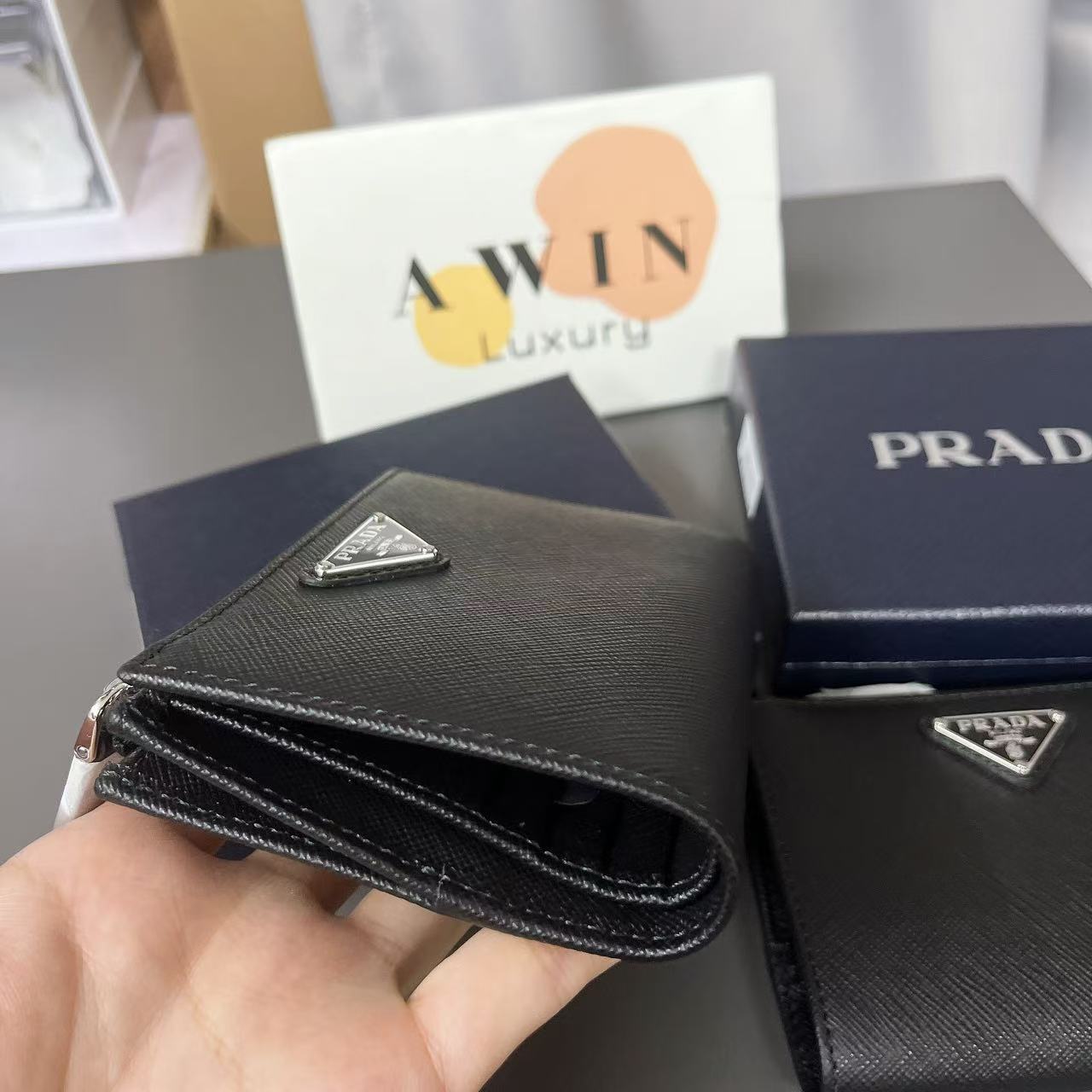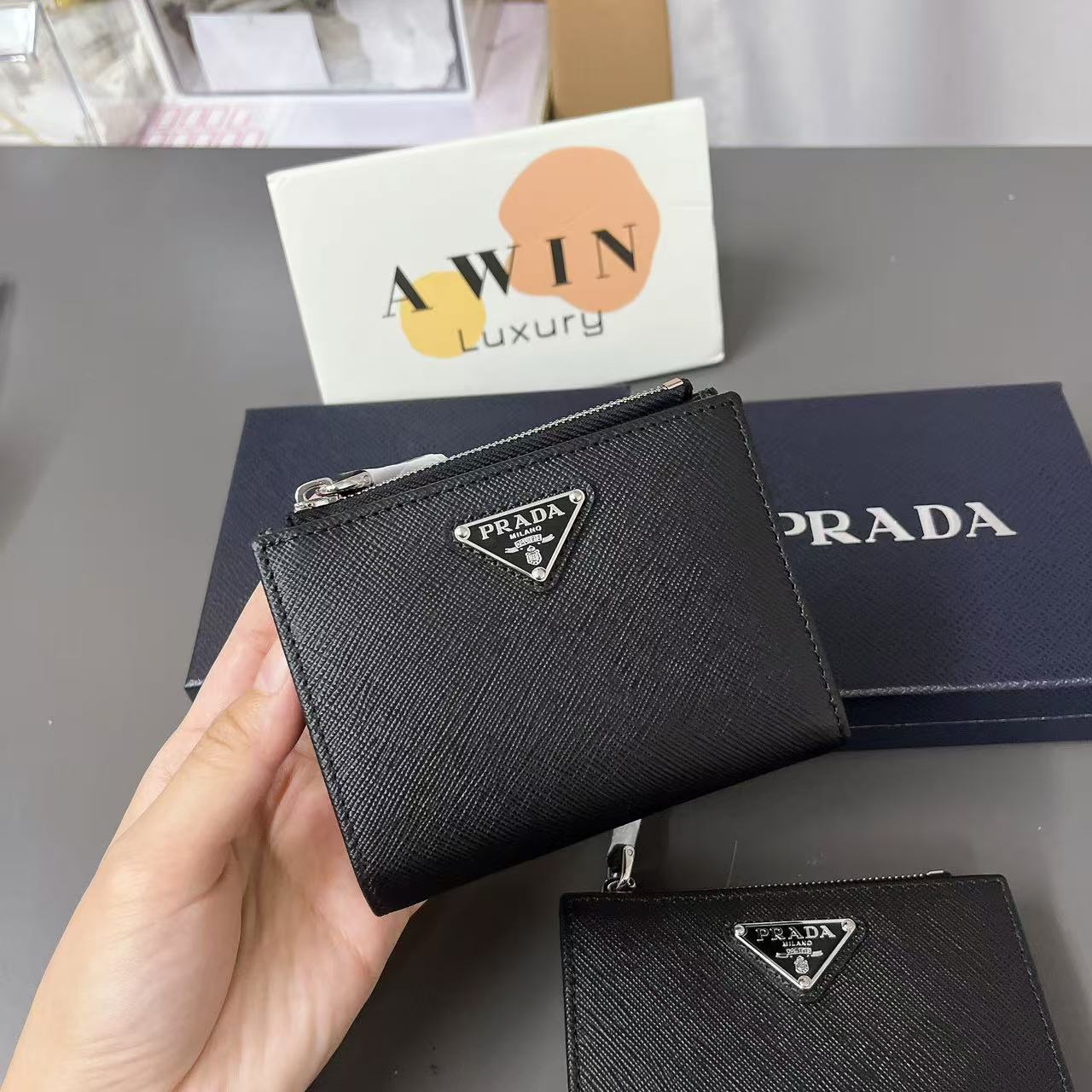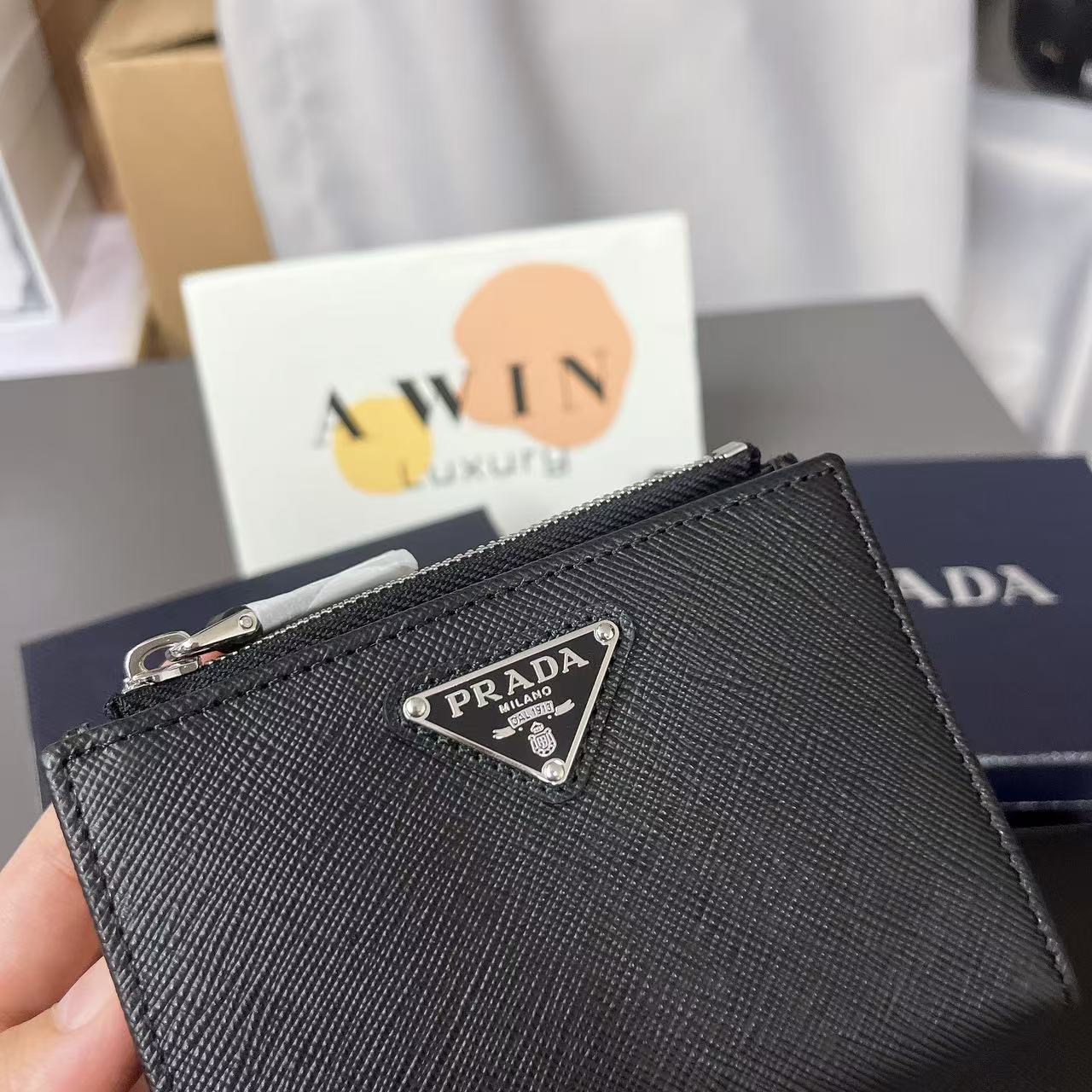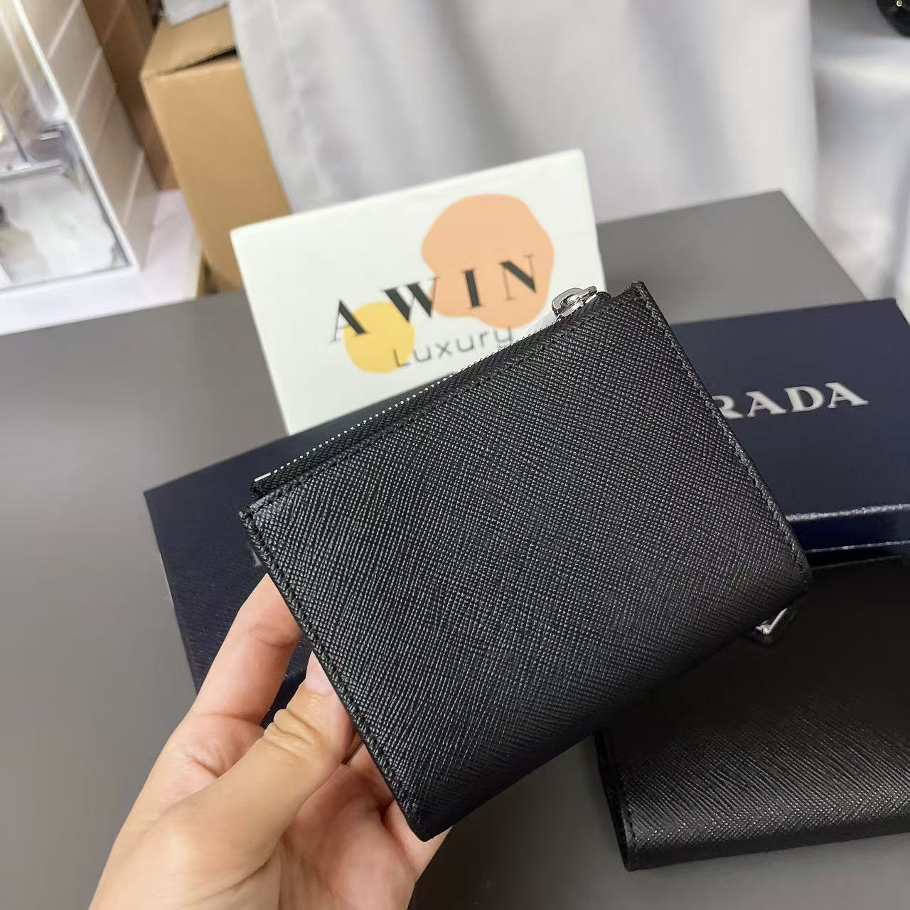 PRADA Saffiano Leather triangle metal logo wallet card bag men’s holiday gift