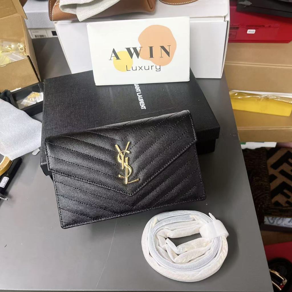 SAINT LAURENT YSL ENVELOPE 19CM Leather Shoulder Bag Messenger Bag
