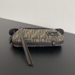Brown FF Jacquard Fabric Mini Bag Small Simply Fendi bag. a soft shoulder bag presented at the Fall-Winter 2024/25 fashion show. named after its elegant and essential design inspired by a 1990s archive style. Made of jacquard fabric with iconic brown FF motif. Decorated with the iconic FF embellishment in dark brown patent leather. Closed by a long. dark brown calfskin zipper-pull with knot and featuring an internal lined compartment and gold-finish metalware. The bag can be worn on the shoulder thanks to the adjustable shoulder strap. Measurements: Height : 13 cm Depth : 4.5 cm Width : 22 cm Weight : 0.31 kg